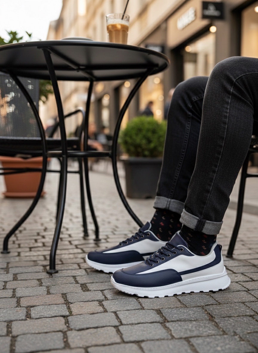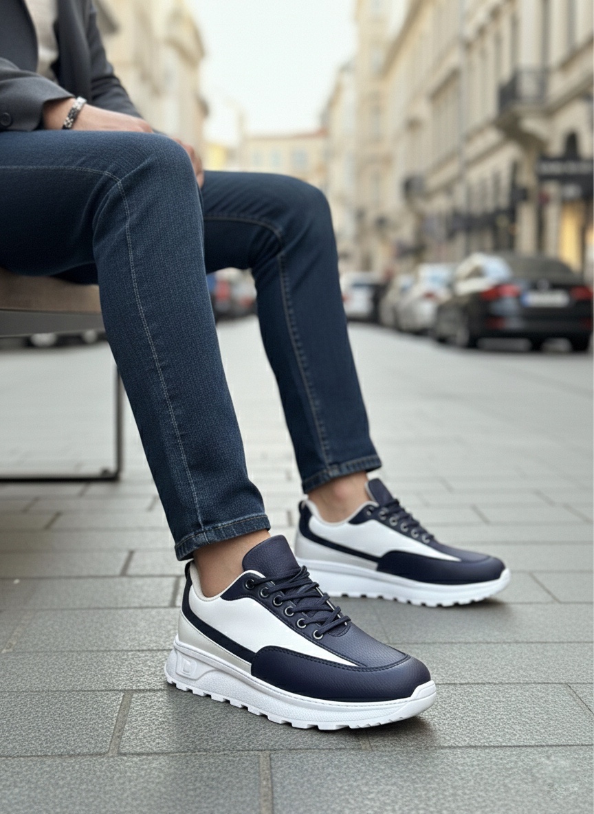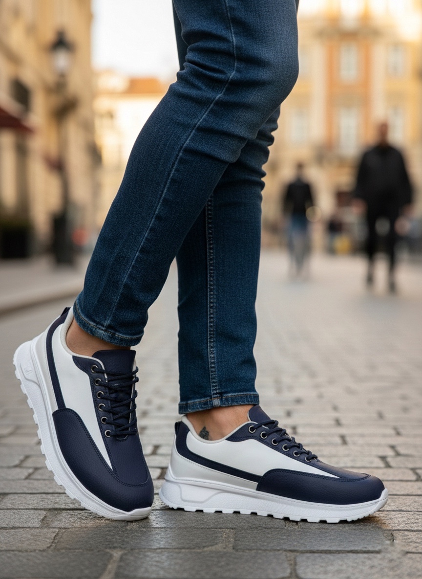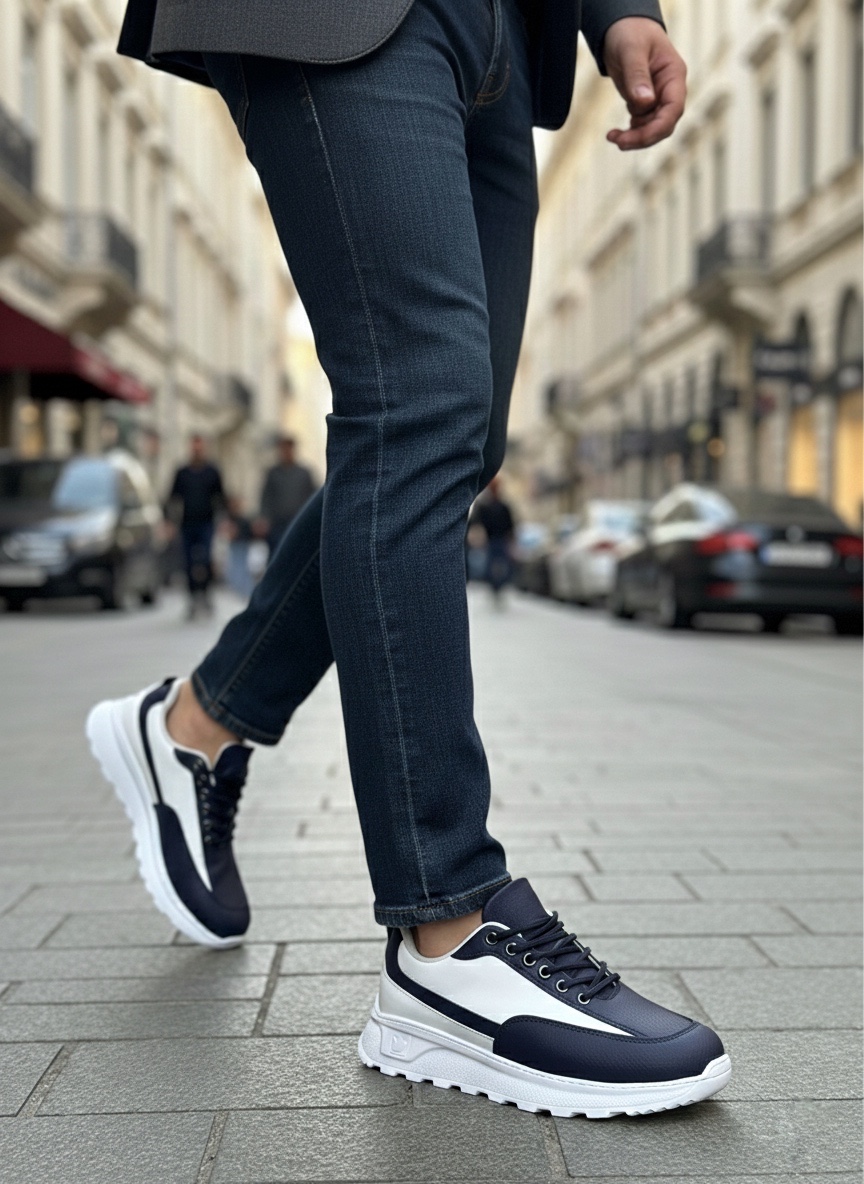 • AHN0246 Lacivert Bağcıklı Yüksek Beyaz Taban Günlük Erkek Ayakkabı