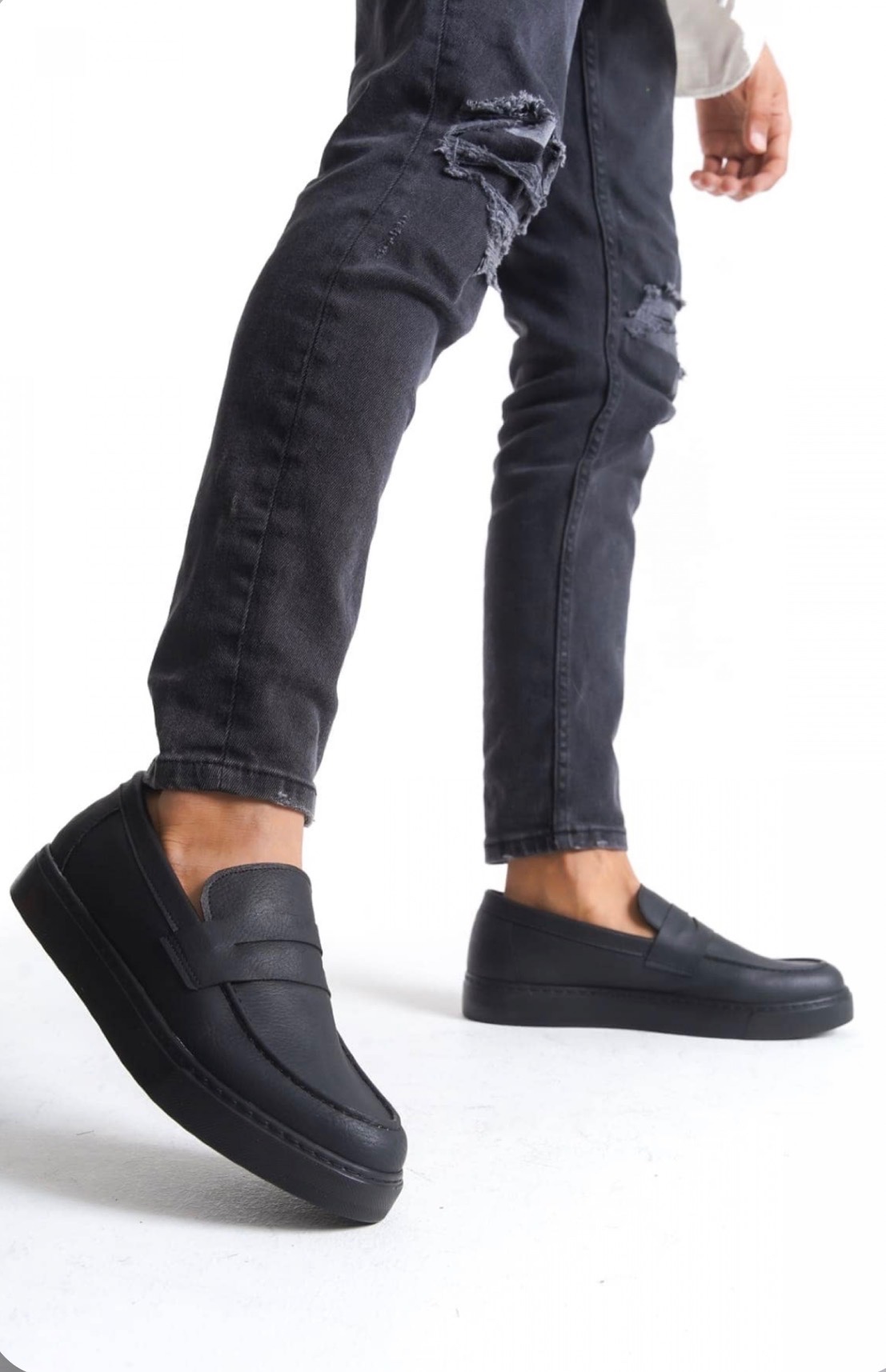 • AHN0580 Bağcıksız Kuşaklı Yüksek Siyah Taban Erkek Ayakkabı