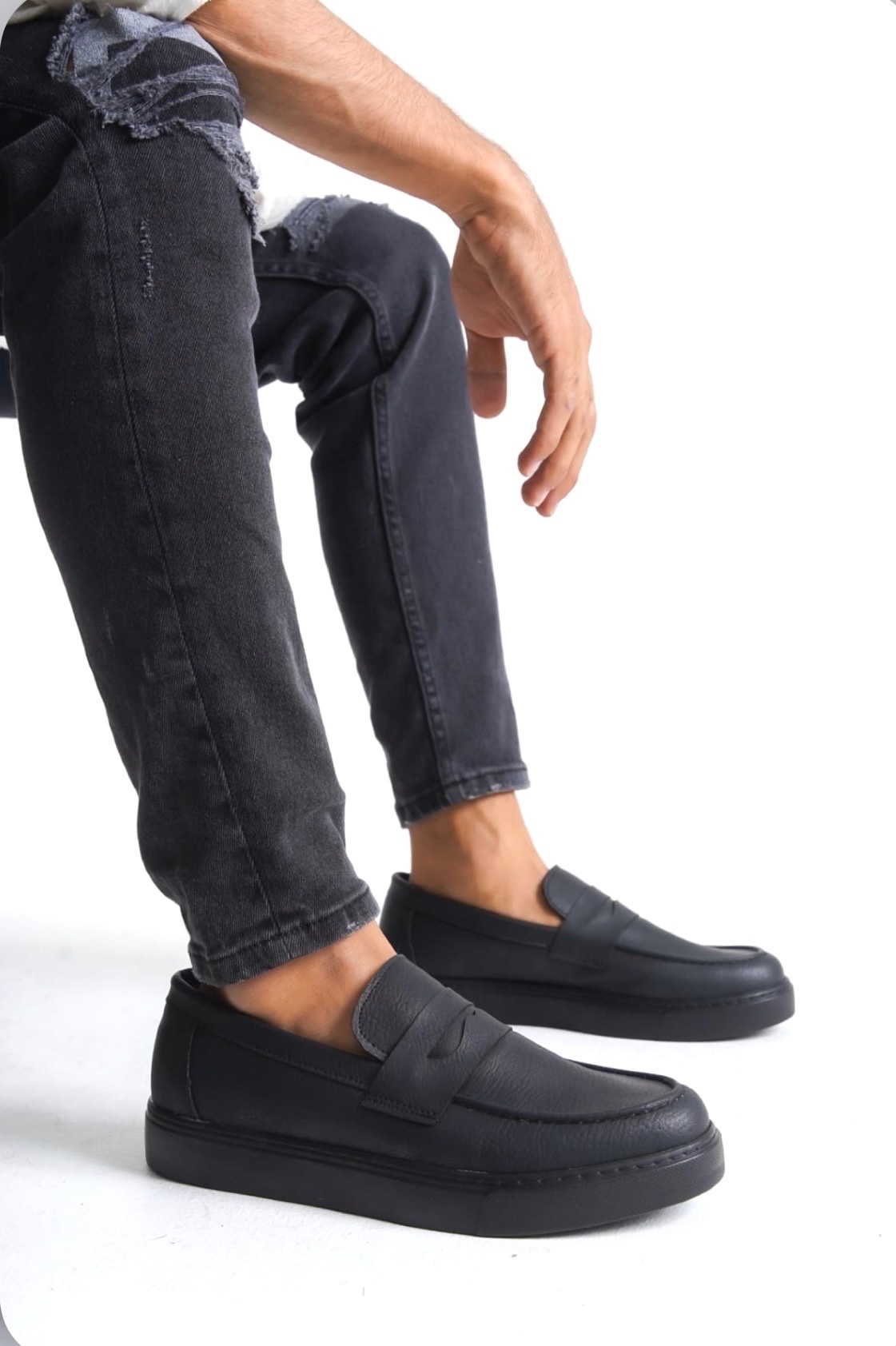 Tarz Erkek Ayakkabı Günlük Ayakkabı AHN0580 Bağcıksız Kuşaklı Yüksek Siyah Taban Erkek Ayakkabı