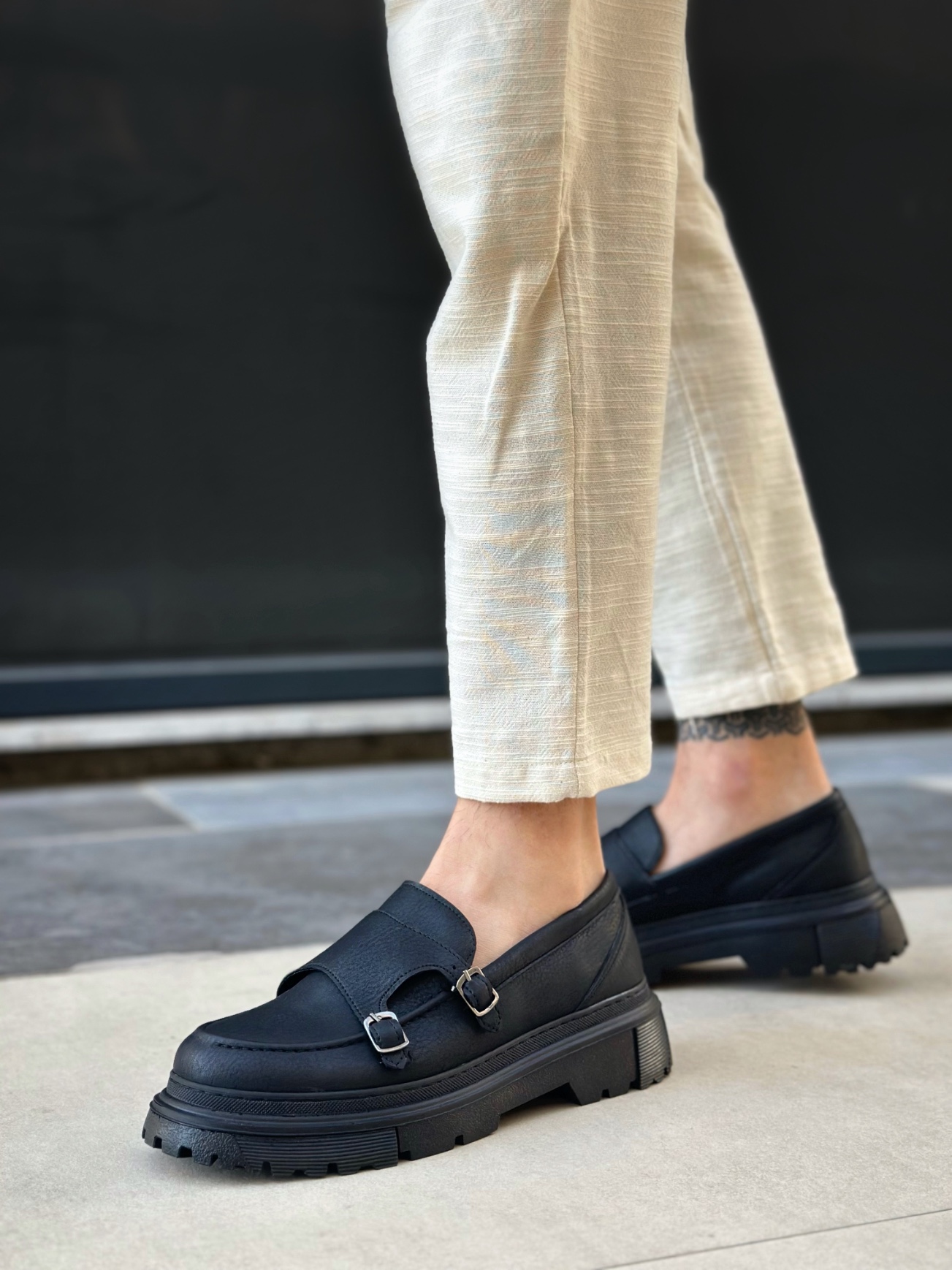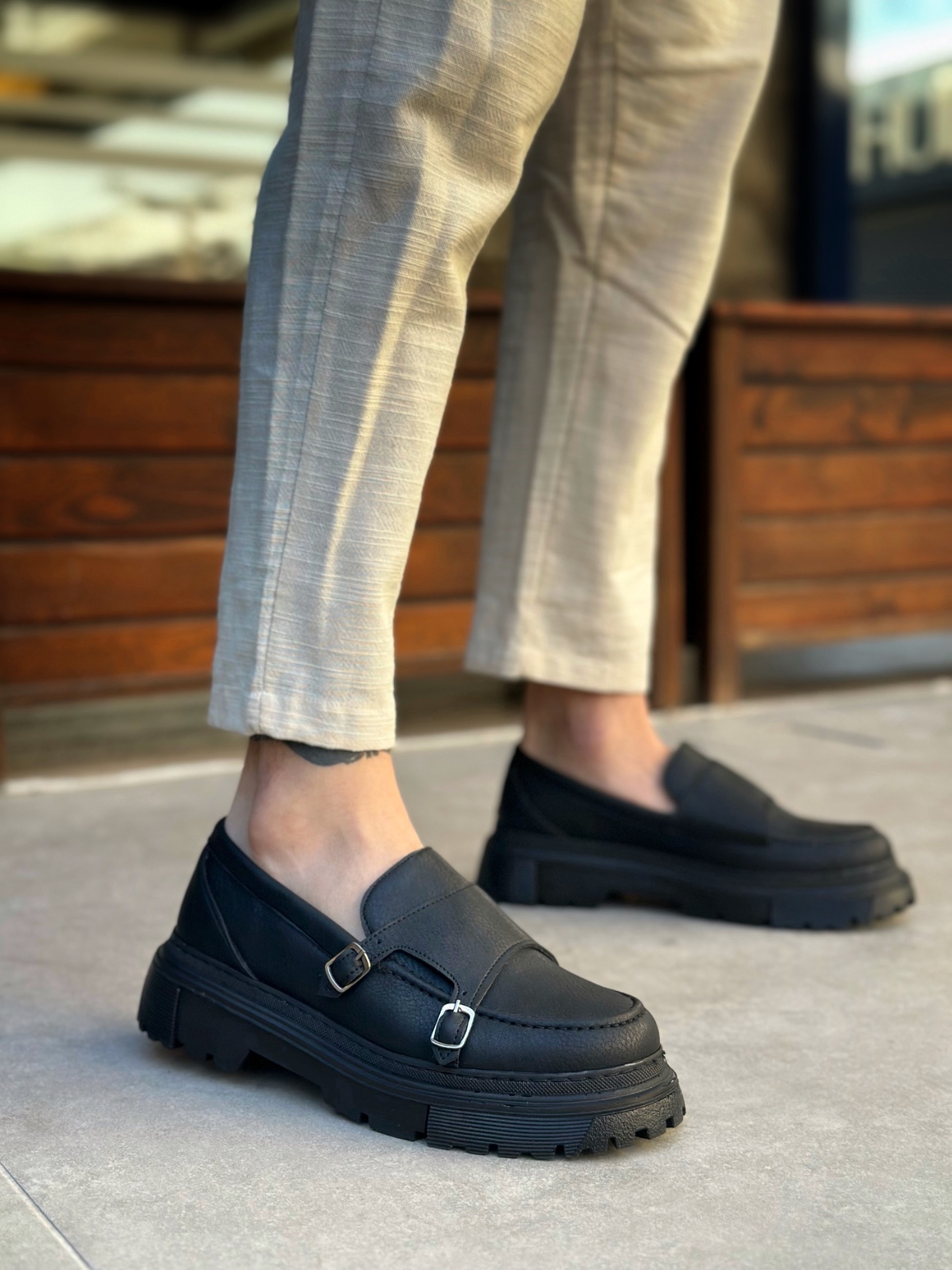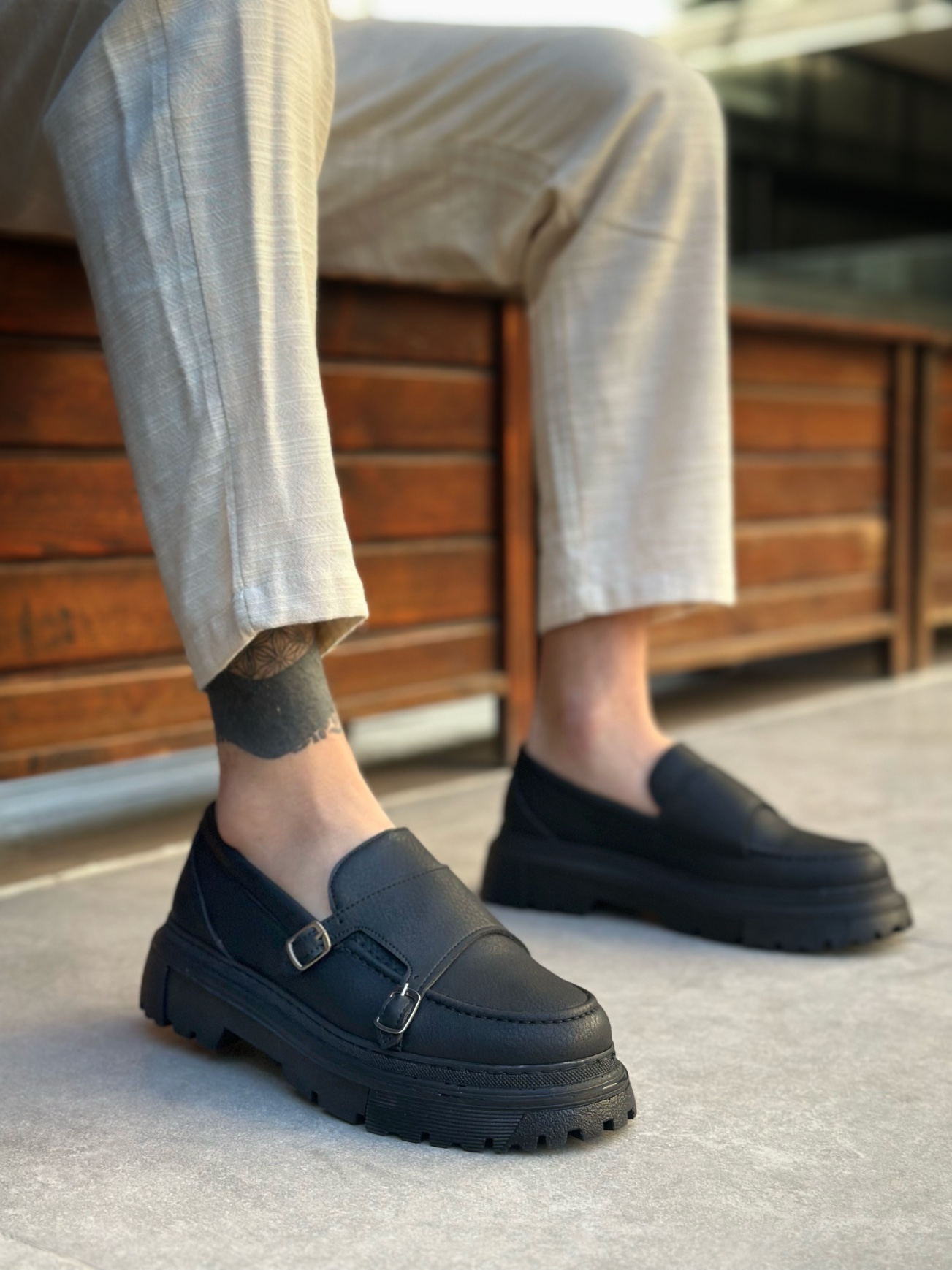 AHN0242 Tokalı Klasik Yüksek Siyah Taban Erkek Ayakkabı
