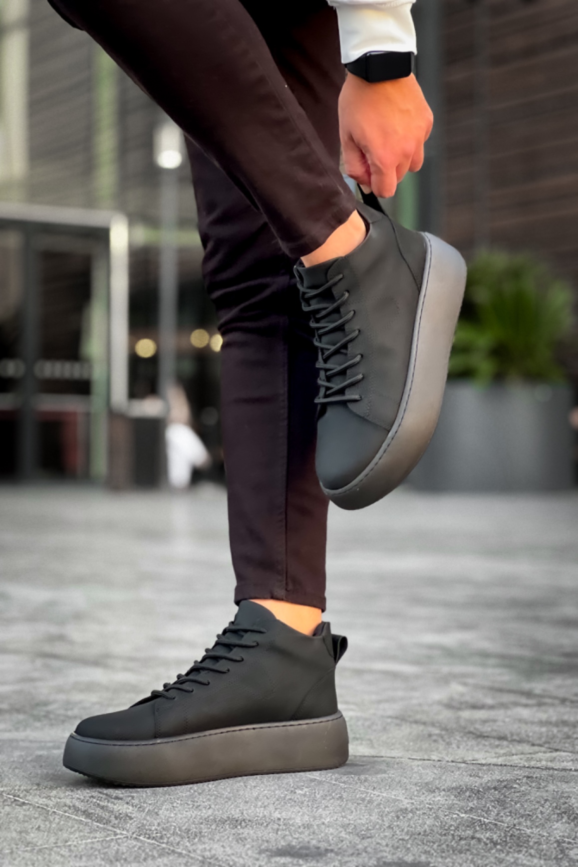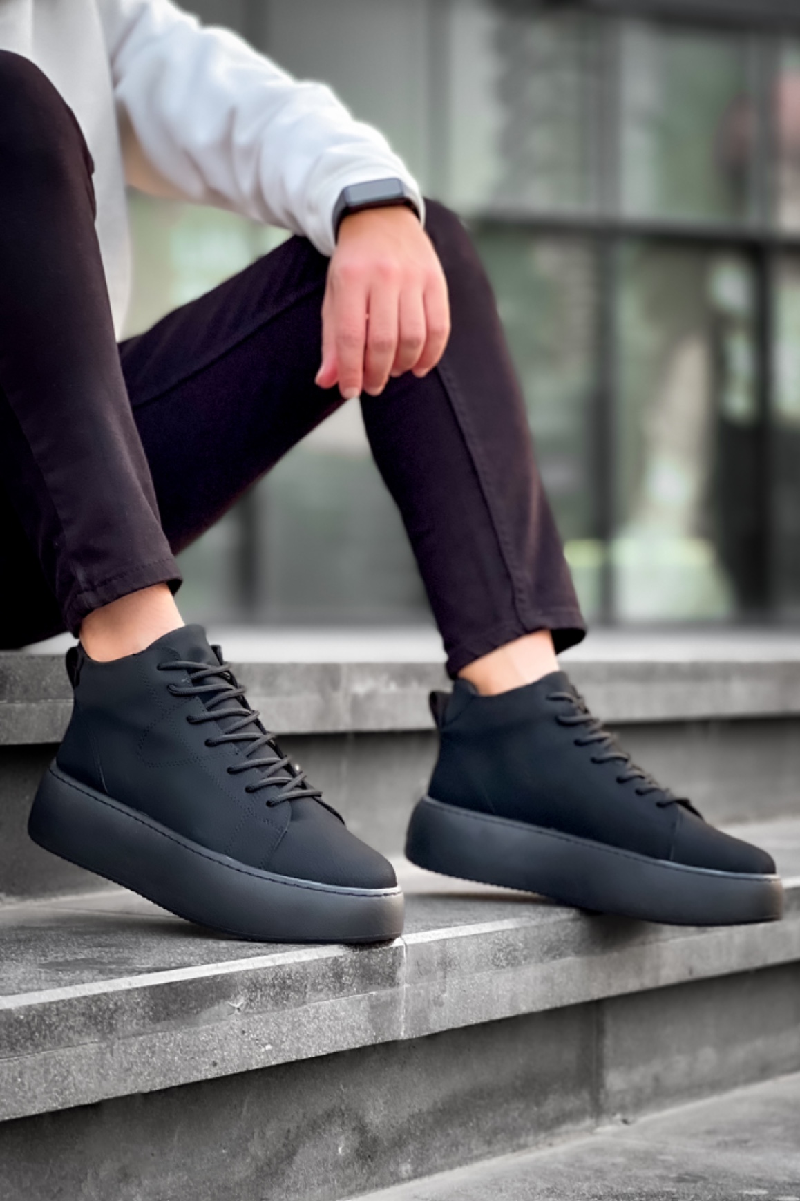 • LE10 Bağcıklı Erkek Yüksek Siyah Taban Siyah Spor Bot