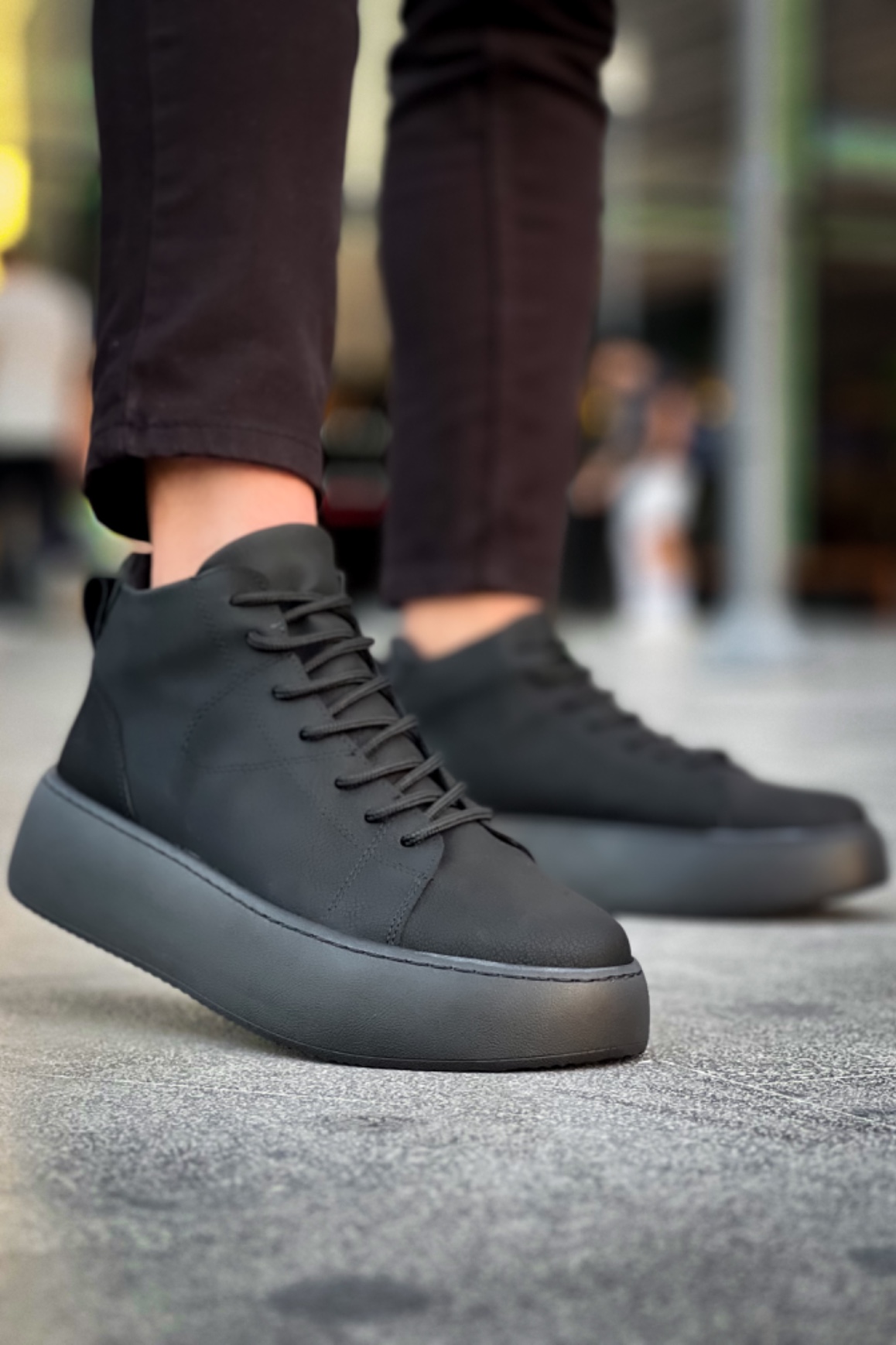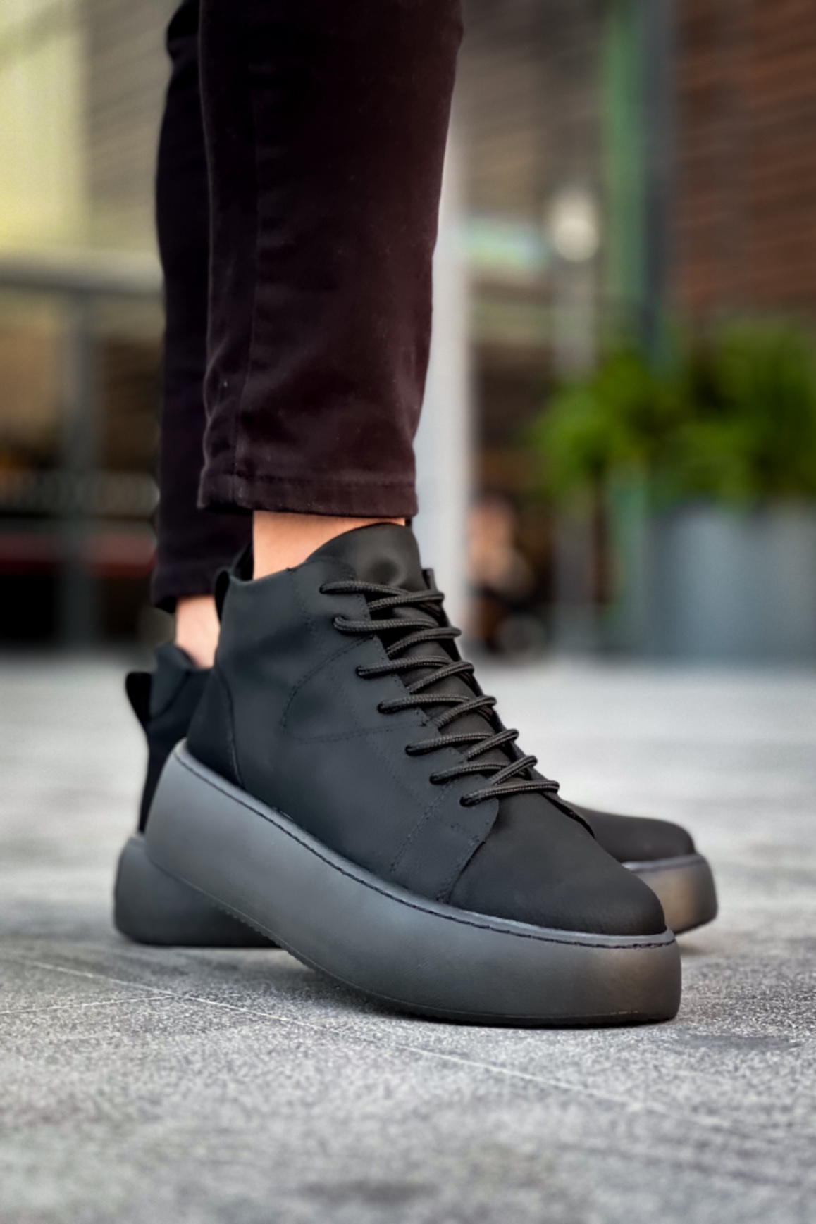 LE10 Bağcıklı Erkek Yüksek Siyah Taban Siyah Spor Bot