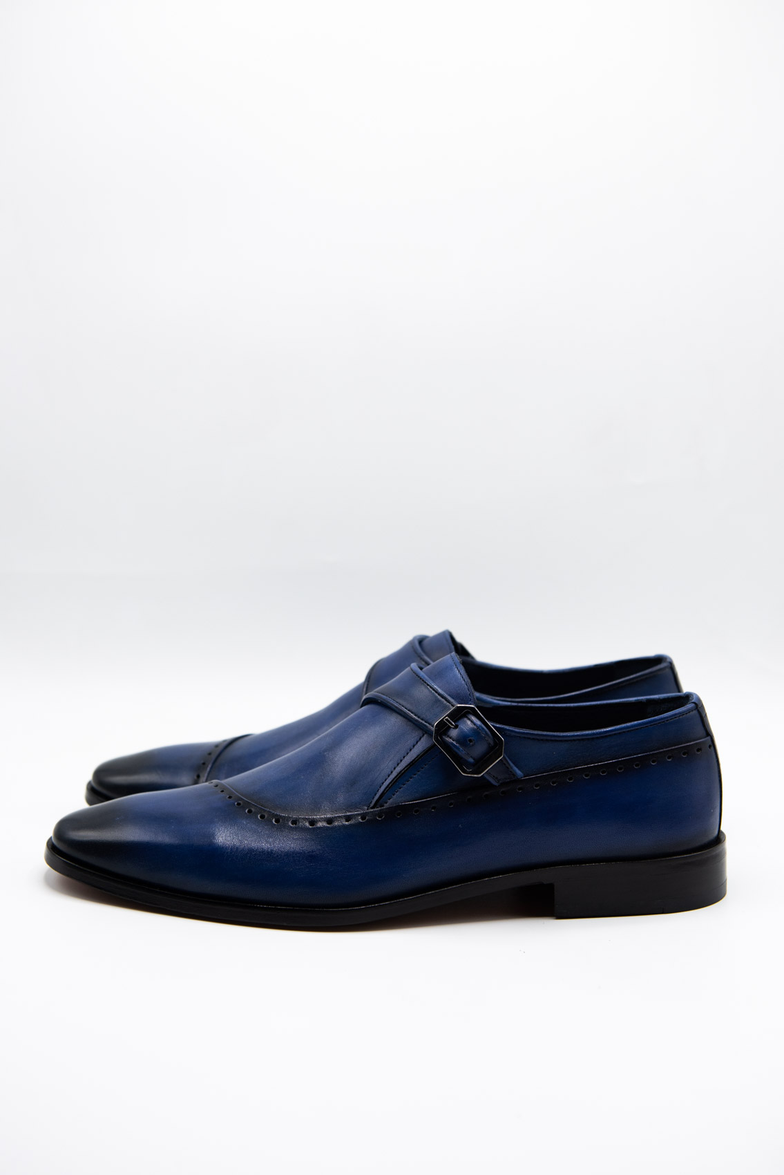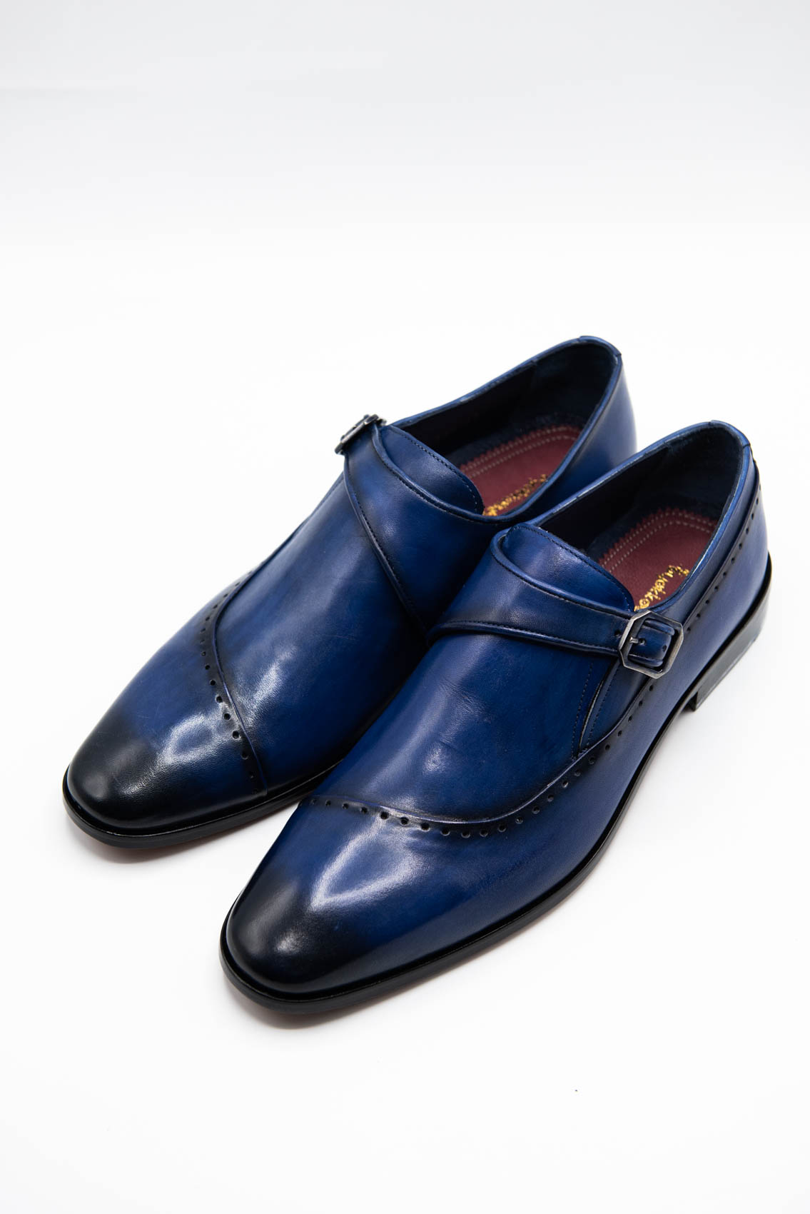 Klasik Ayakkabı Ayakkabıhane Özel Üretim Kösele Taban Hakiki Deri Mavi El Boyama Erkek Klasik Ayakkabı CEK777 EA003