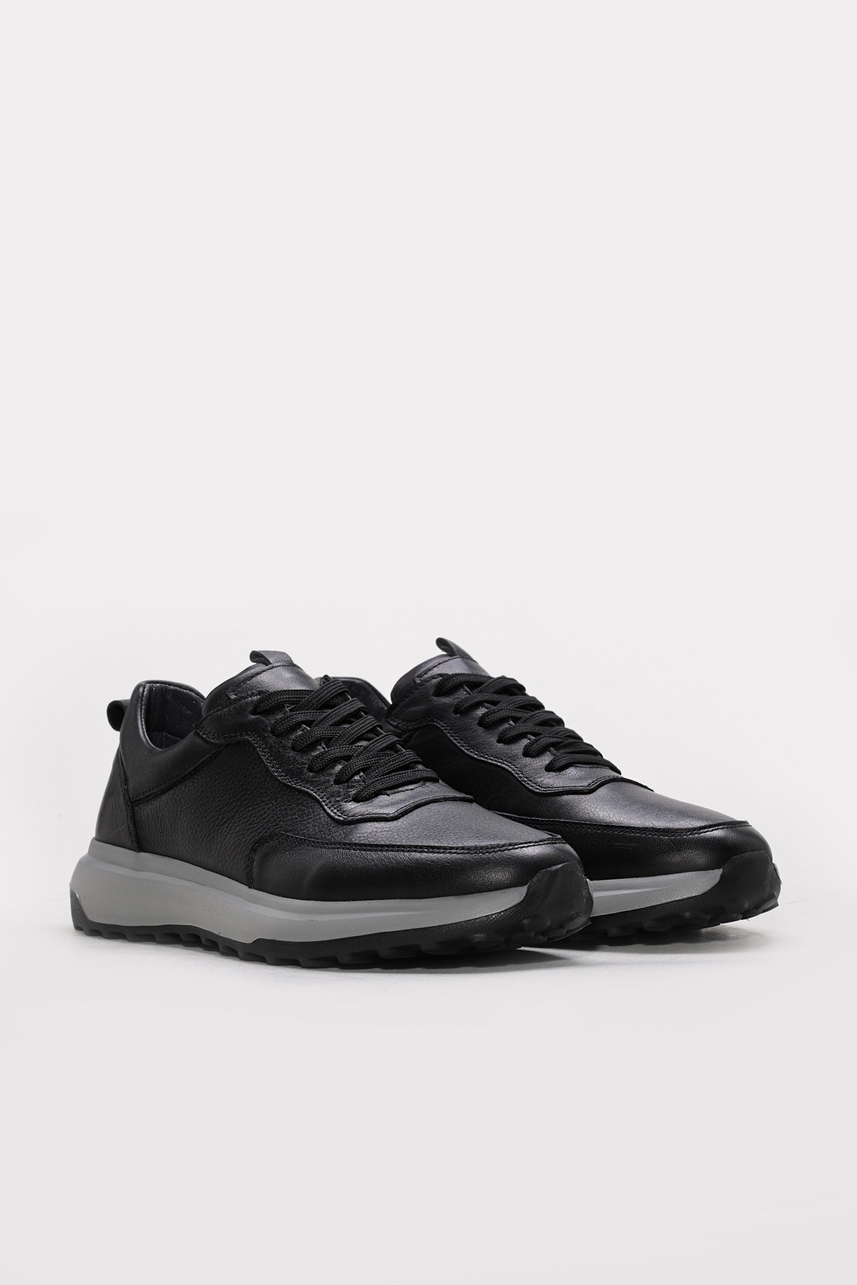 Ayakkabıhane İçi Dışı Hakiki Deri Siyah EVA Erkek Spor Sneaker Ayakkabı AH08943131275