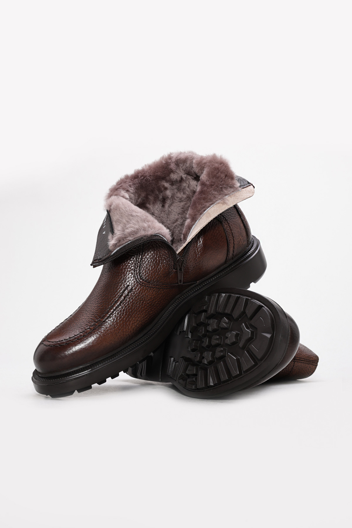Ayakkabıhane İçi Kürklü Dışı Hakiki Deri Kahve Erkek Fermuarlı Klasik Bot AH0824911131111066