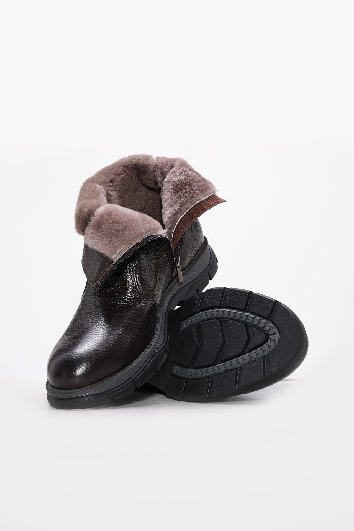 Erkek Erkek Bot Ayakkabıhane İçi Kürklü Dışı Hakiki Deri Kahve Fermuarlı Erkek Klasik Bot AH082491113185180