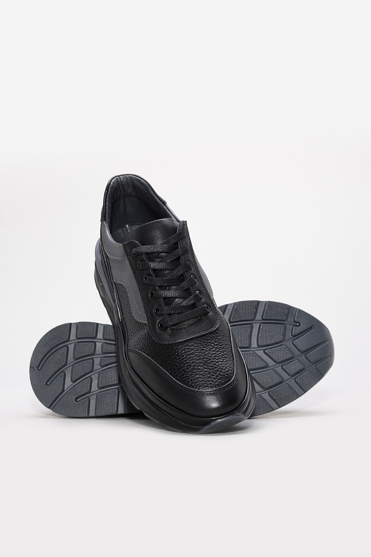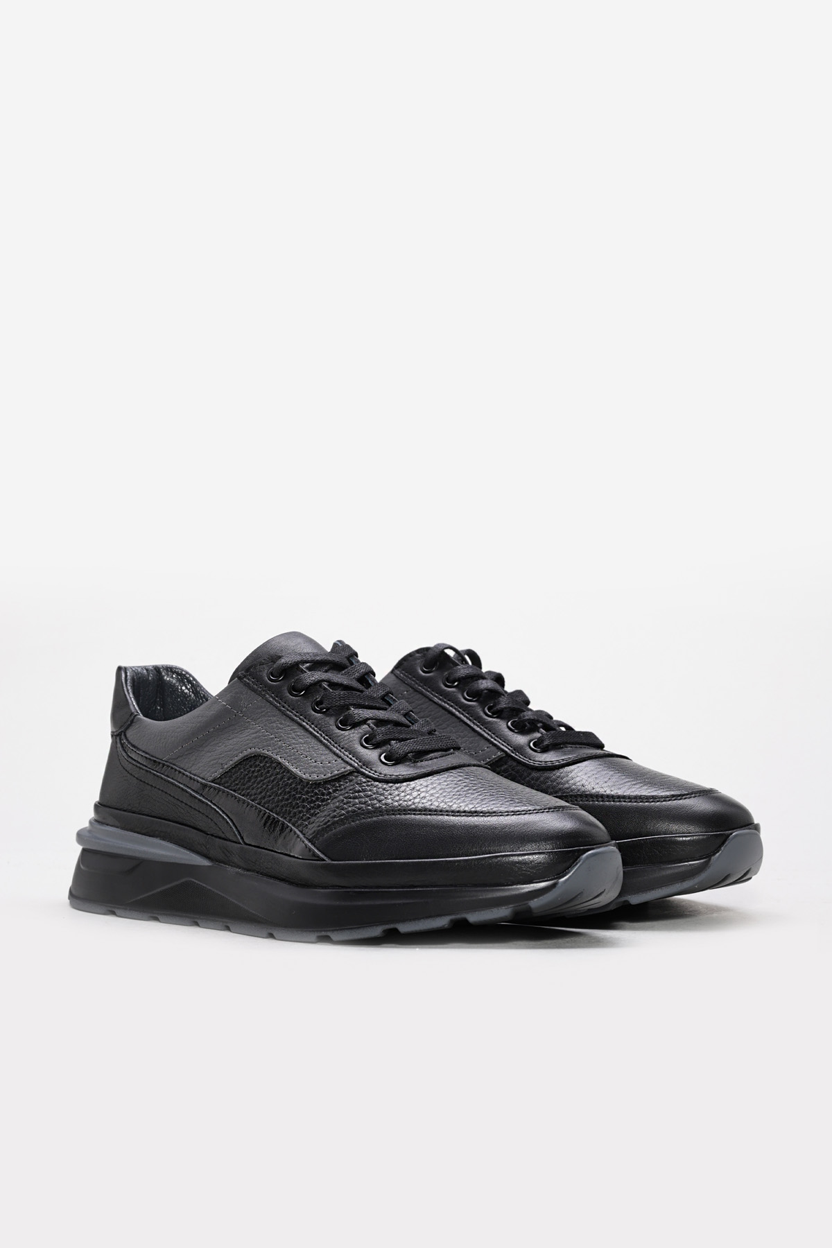Ayakkabıhane İçi Dışı Hakiki Deri Siyah Bağcıklı Erkek Spor Ayakkabı AH08856131550