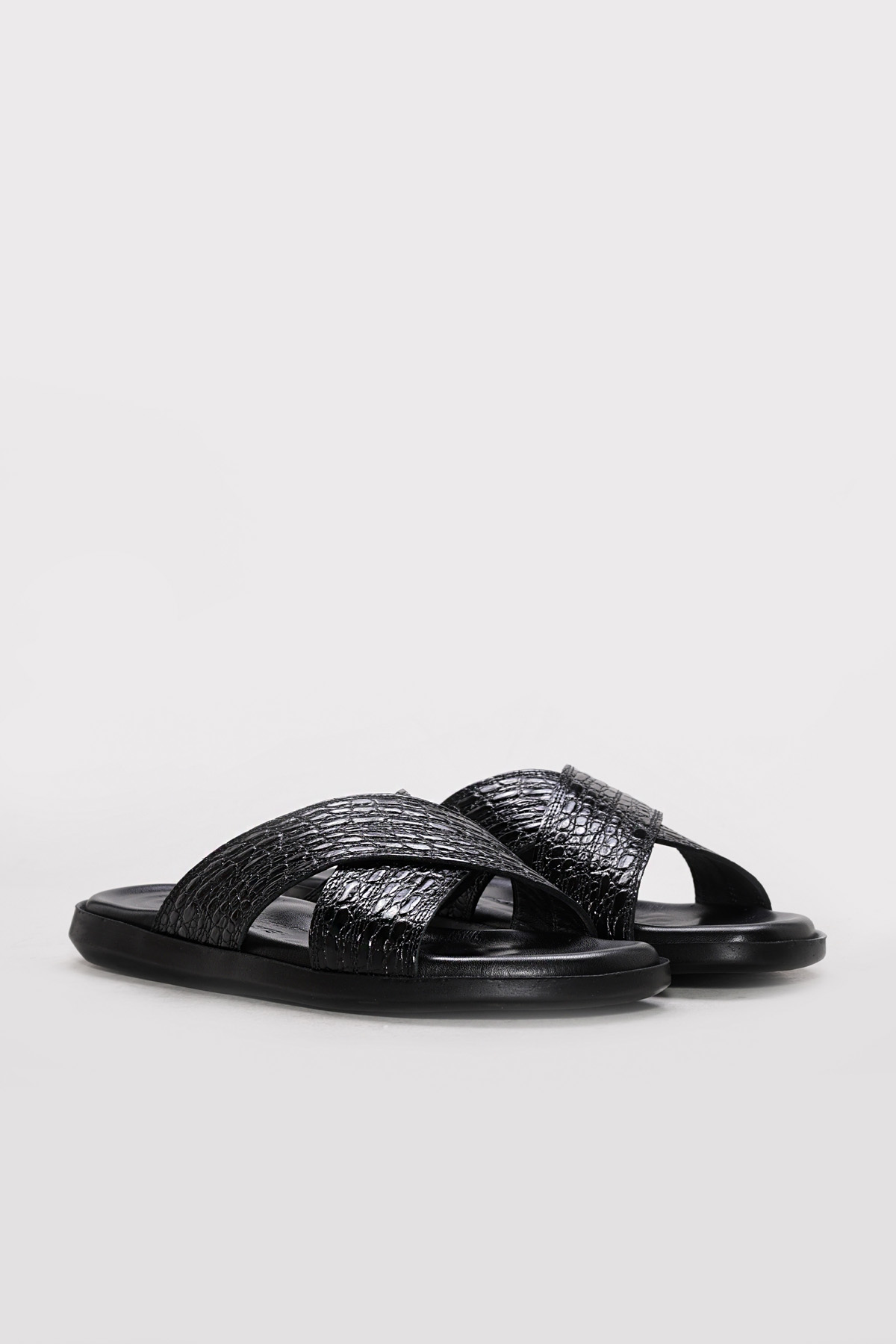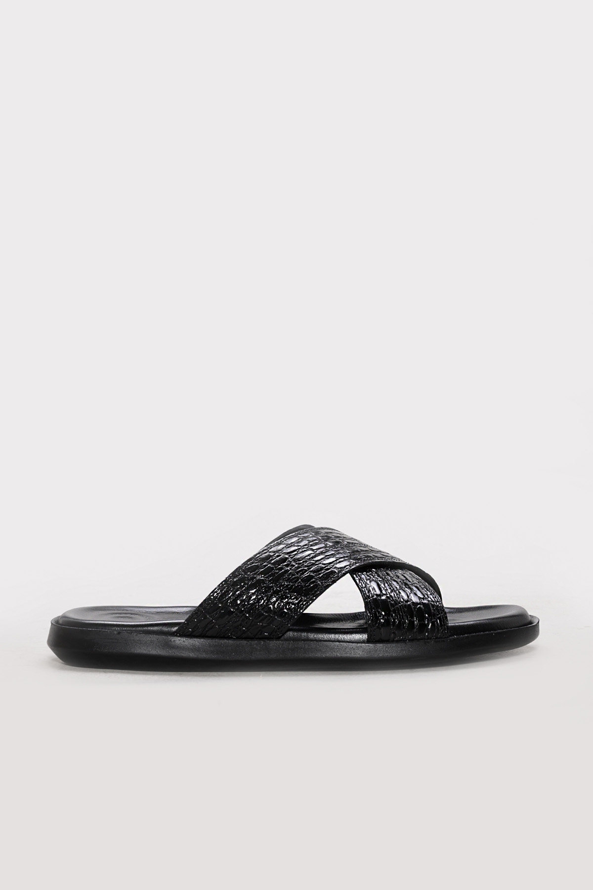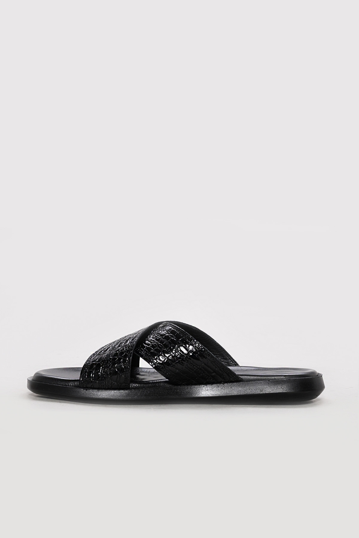 • Ayakkabıhane Hakiki Deri Siyah Erkek Düz Terlik AH07295MA629