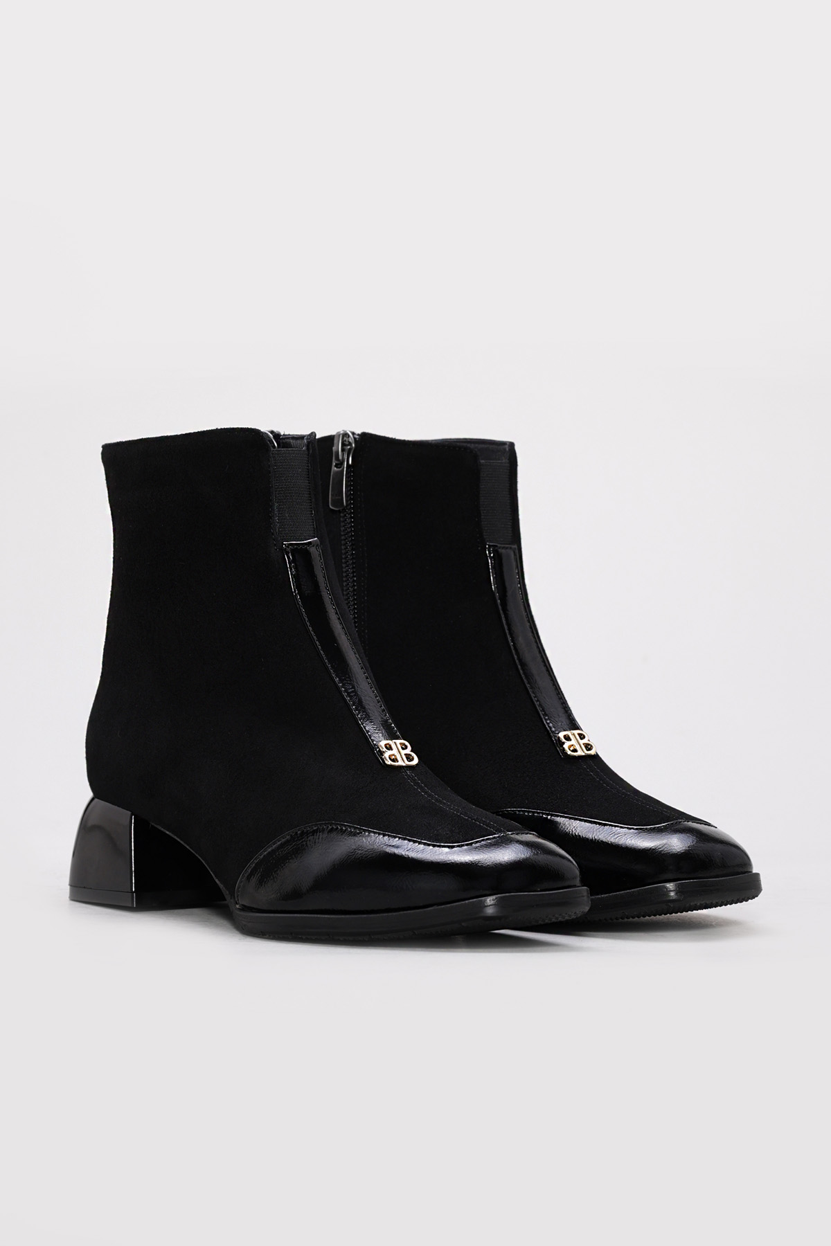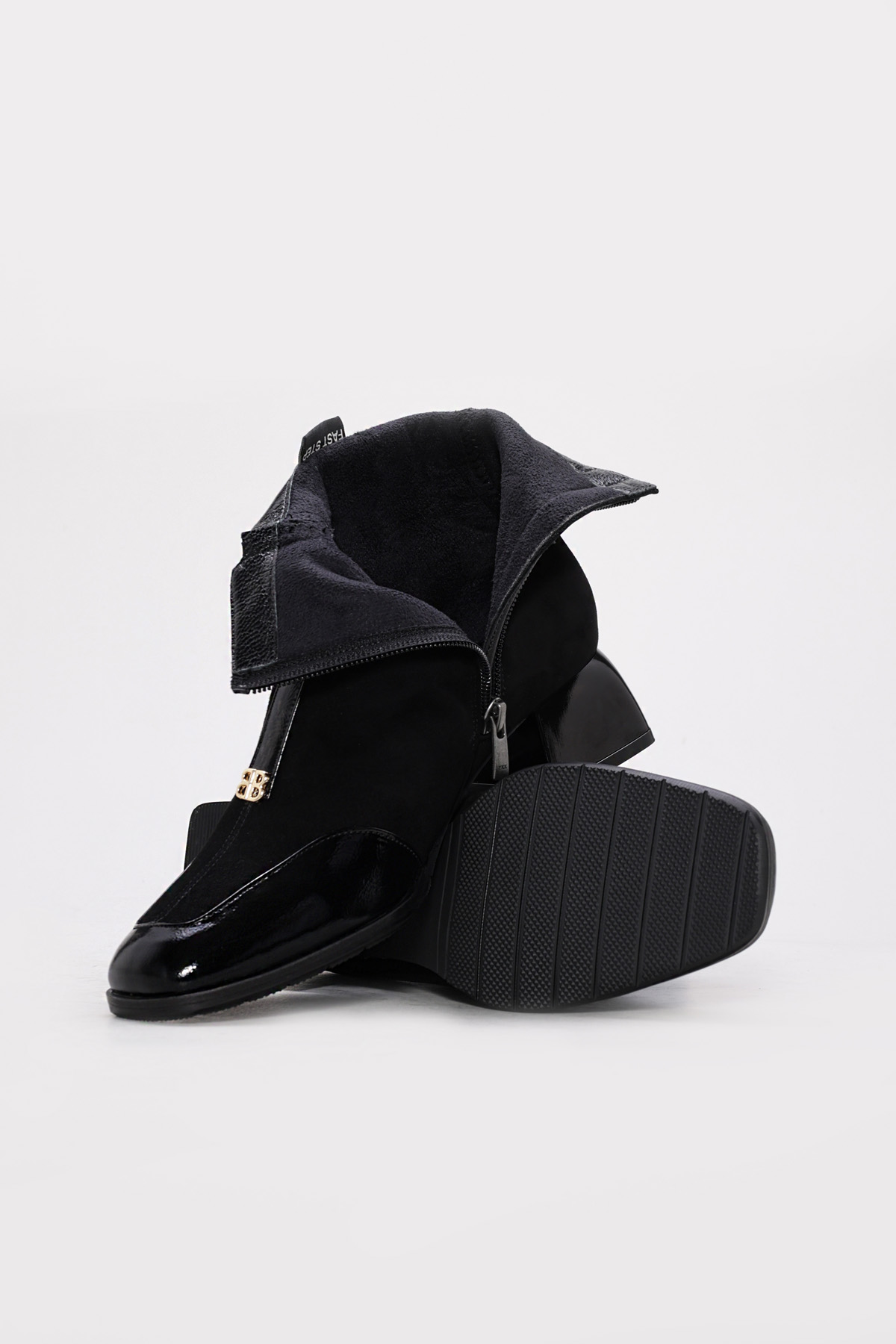 Ayakkabıhane Hakiki Deri Siyah Süet Rugan Kadın Klasik Bot AH07264SZA855