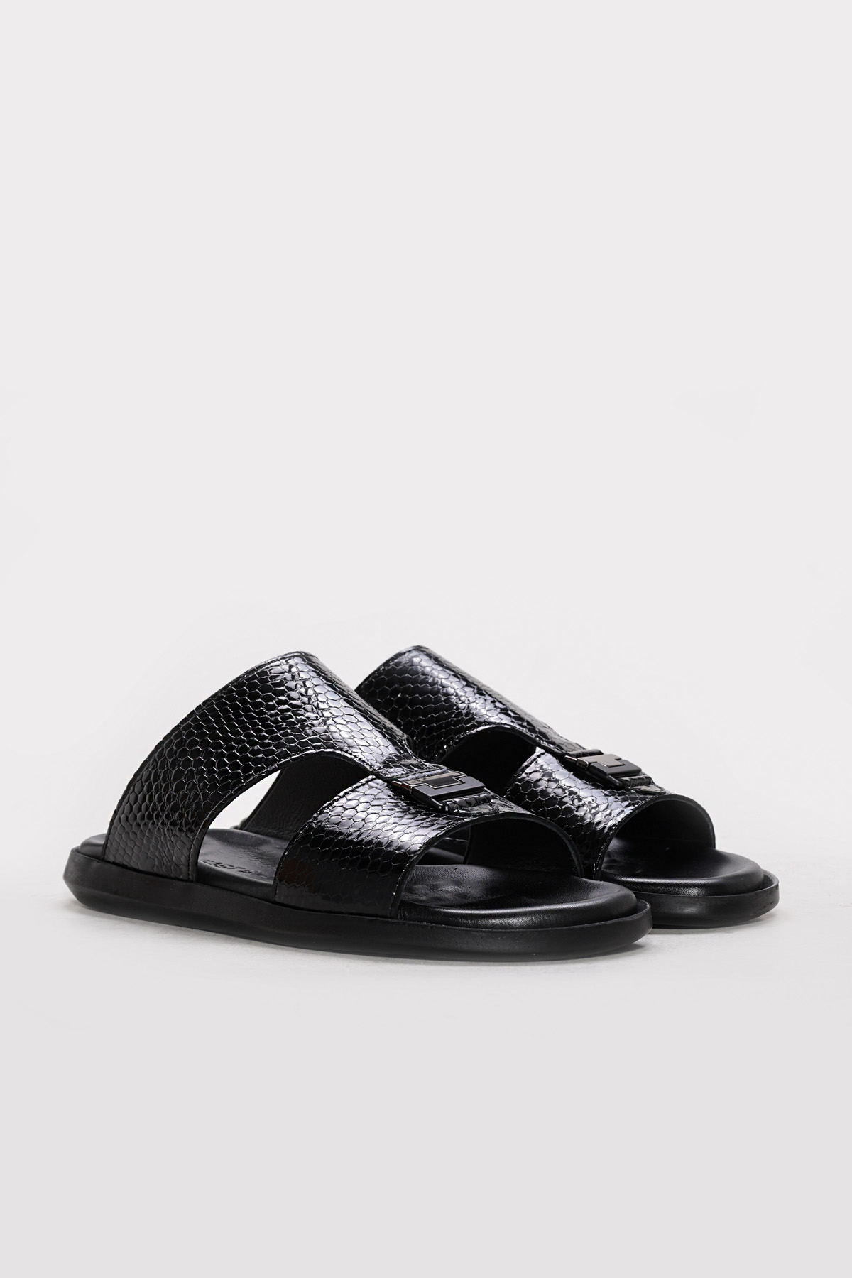 Ayakkabıhane İçi Dışı Hakiki Deri Siyah Rahat Erkek Terlik AH0829513111138