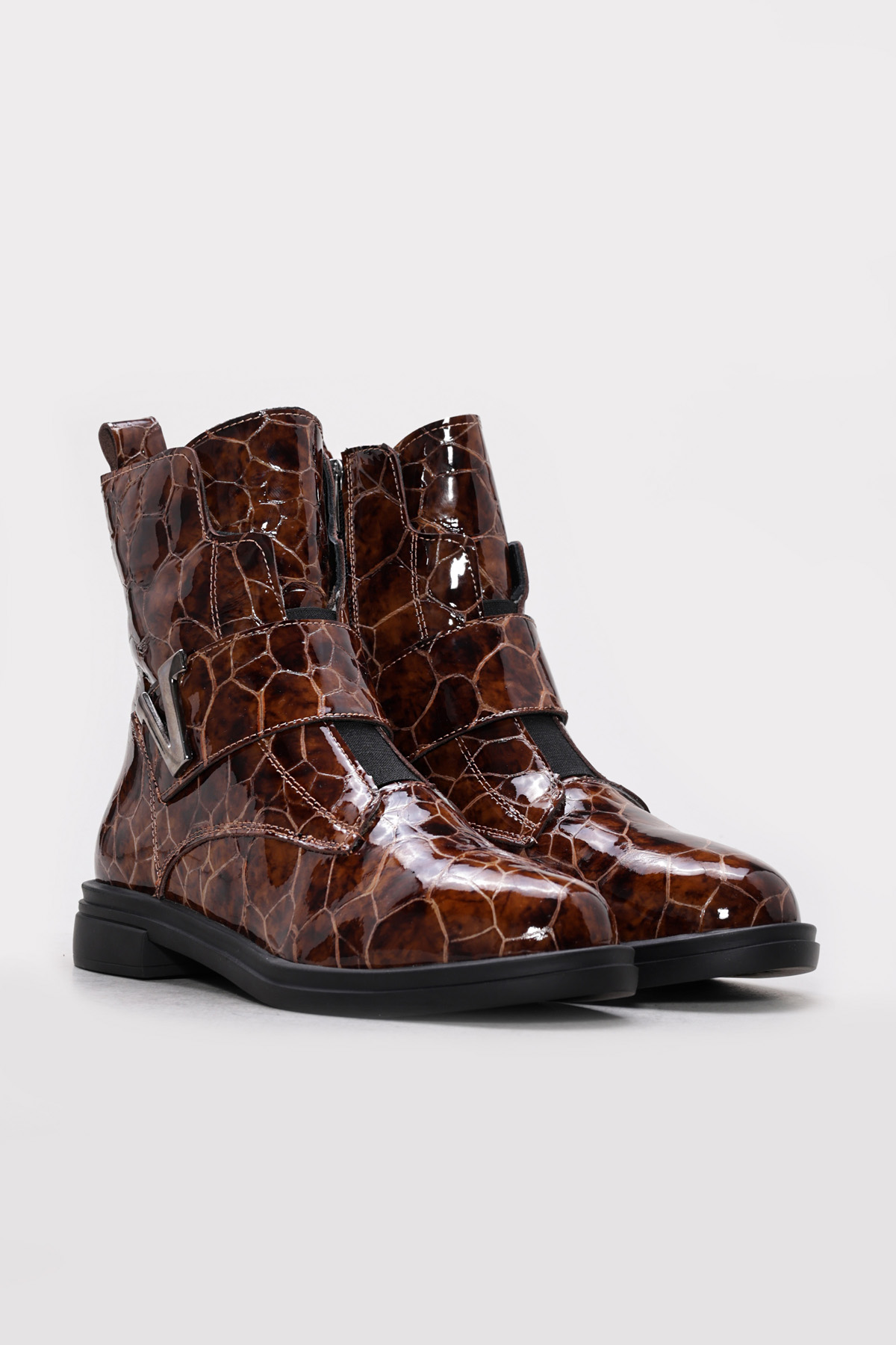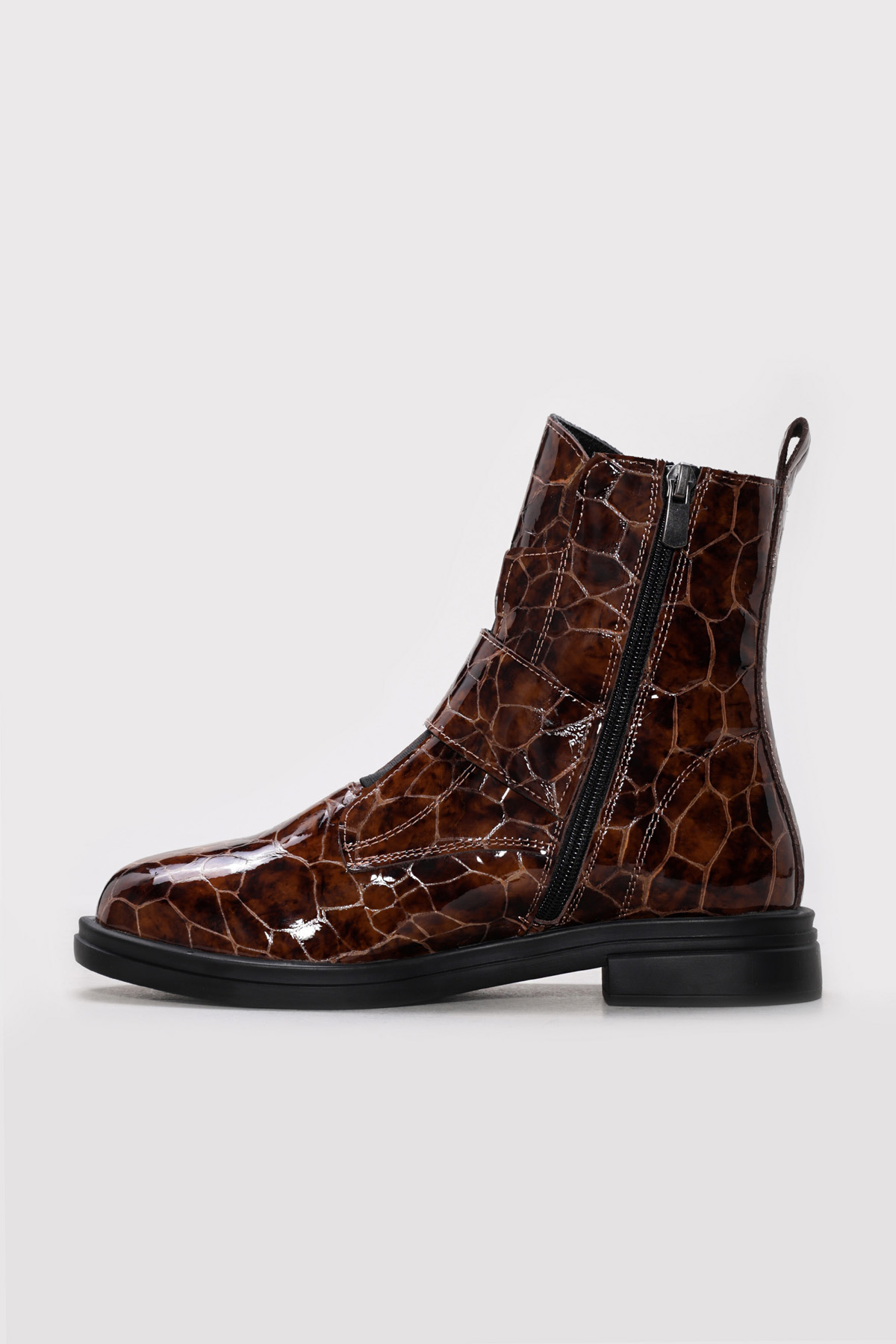 • Ayakkabıhane İçi Kürklü Dışı Hakiki Kroko Rugan Deri Kahve Tarz Kadın Bot AH0823811261231