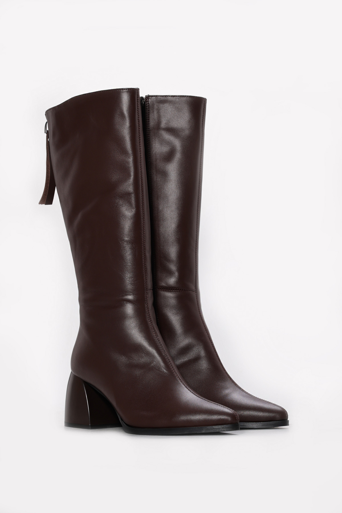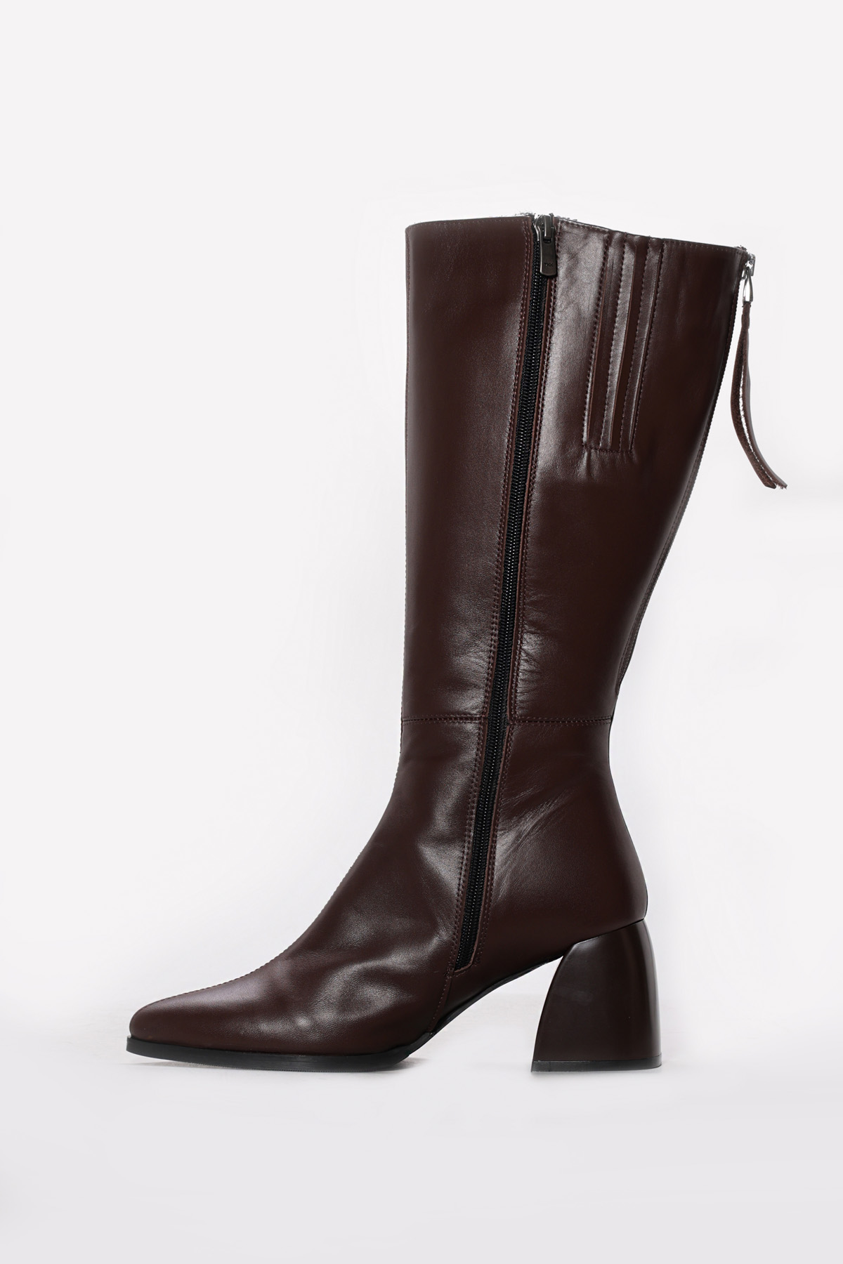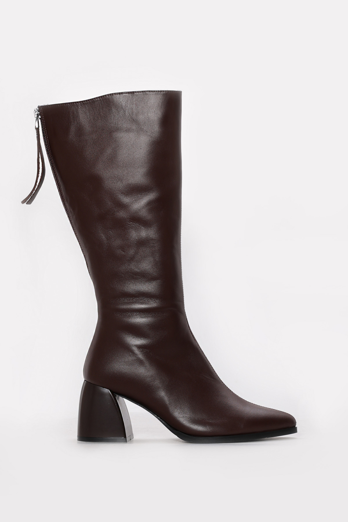 Ayakkabıhane İçi Yarım Kürklü Dışı Hakiki Deri Kahve Kadın Topuklu Çizme AH0806425261956