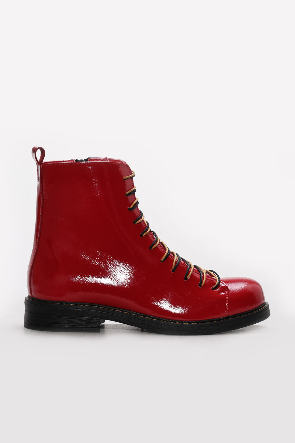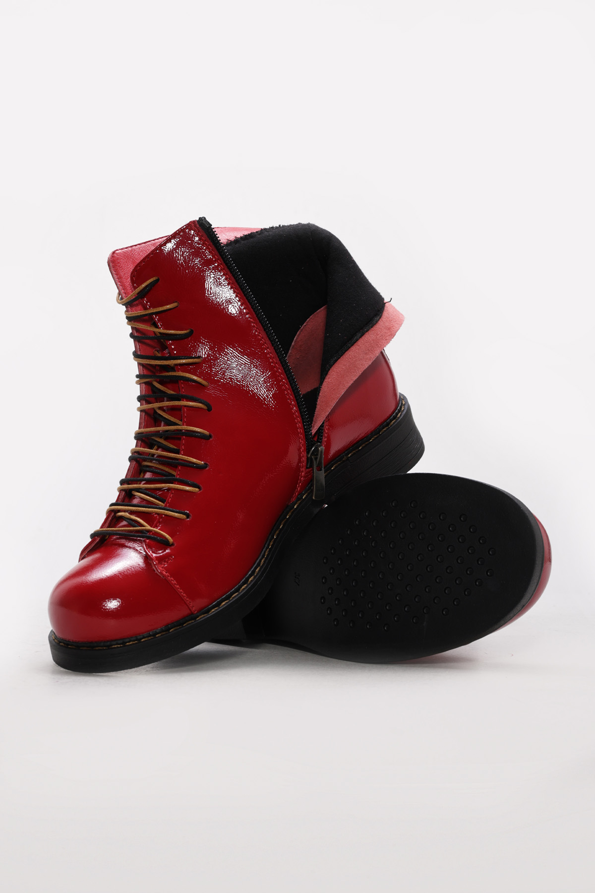 Ayakkabıhane İçi Dışı Hakiki Rugan Deri Kırmızı Tarz Kadın Bot AH0874219261617415