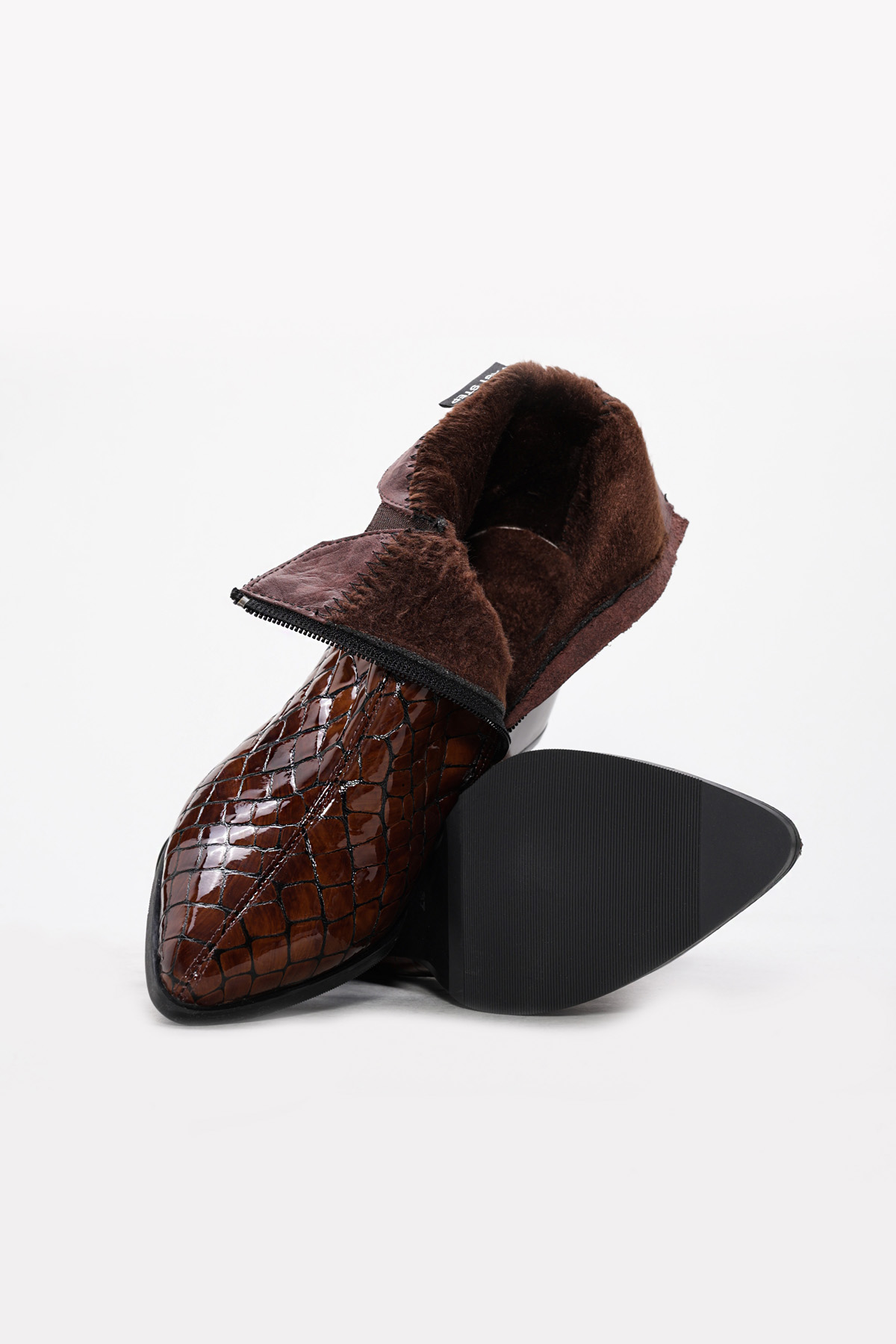Ayakkabıhane İçi Kürklü Dışı Hakiki Deri Kahve Kadın Kalın Topuklu Bot AH0806419261910