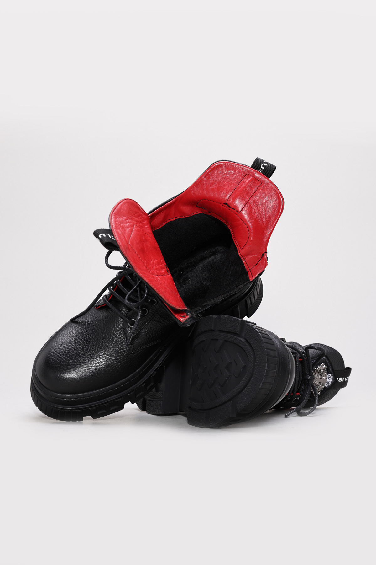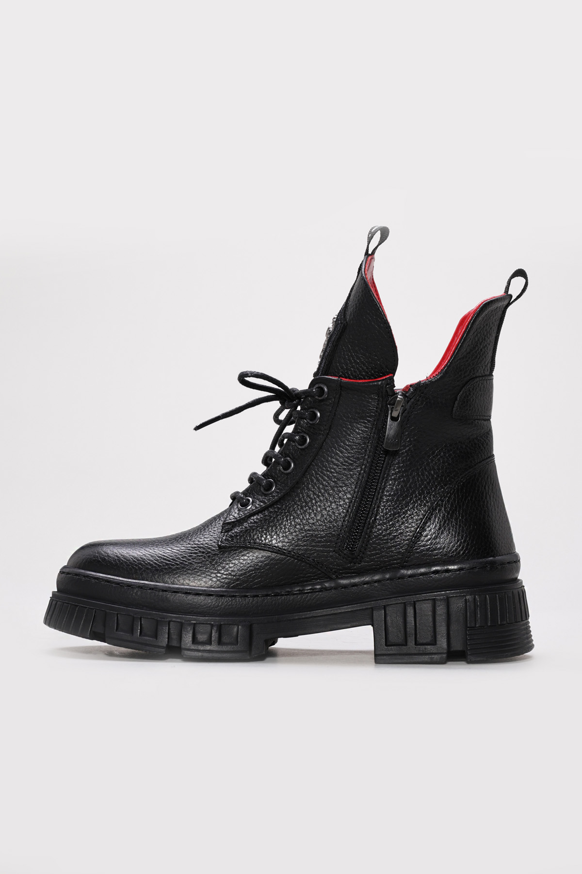 Ayakkabıhane İçi Kürklü Dışı Hakiki Deri Siyah Fermuarlı Kadın Bot AH08262192613158