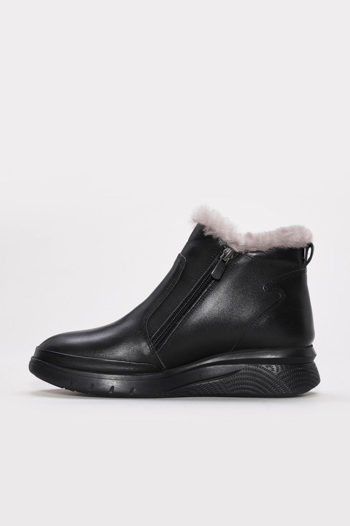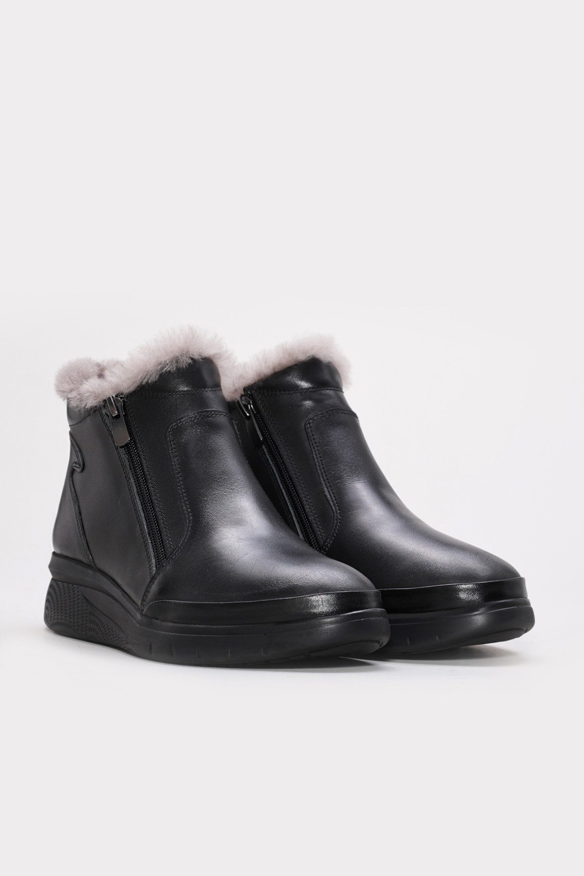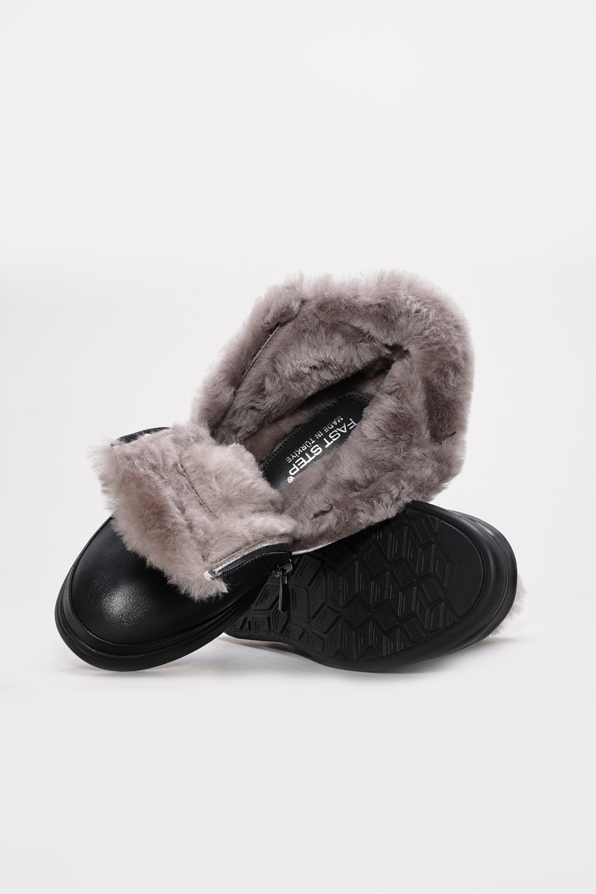 • Ayakkabıhane İçi Kürklü Dışı Hakiki Deri Siyah Fermuarlı Kadın Klasik Bot AH08411112611100