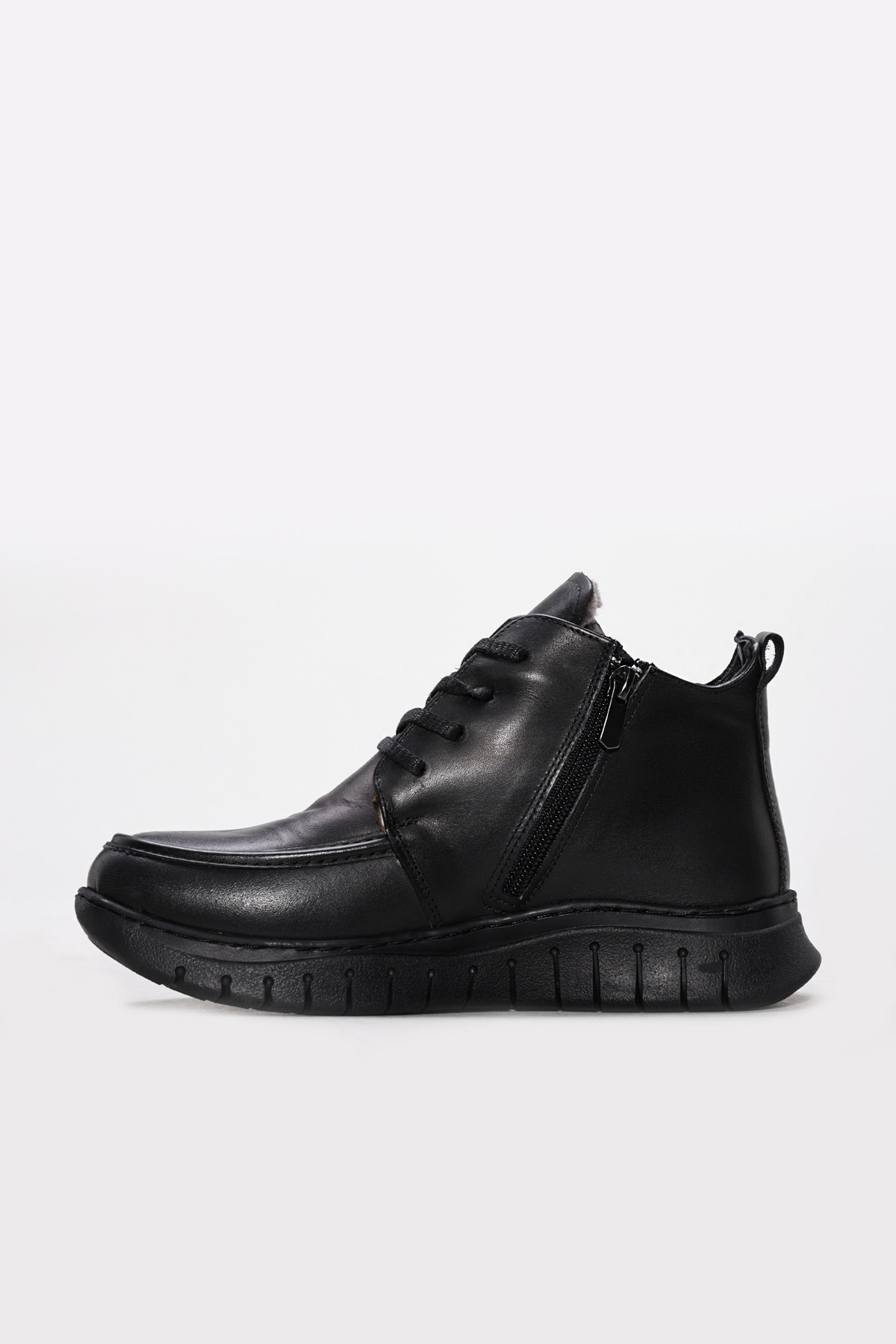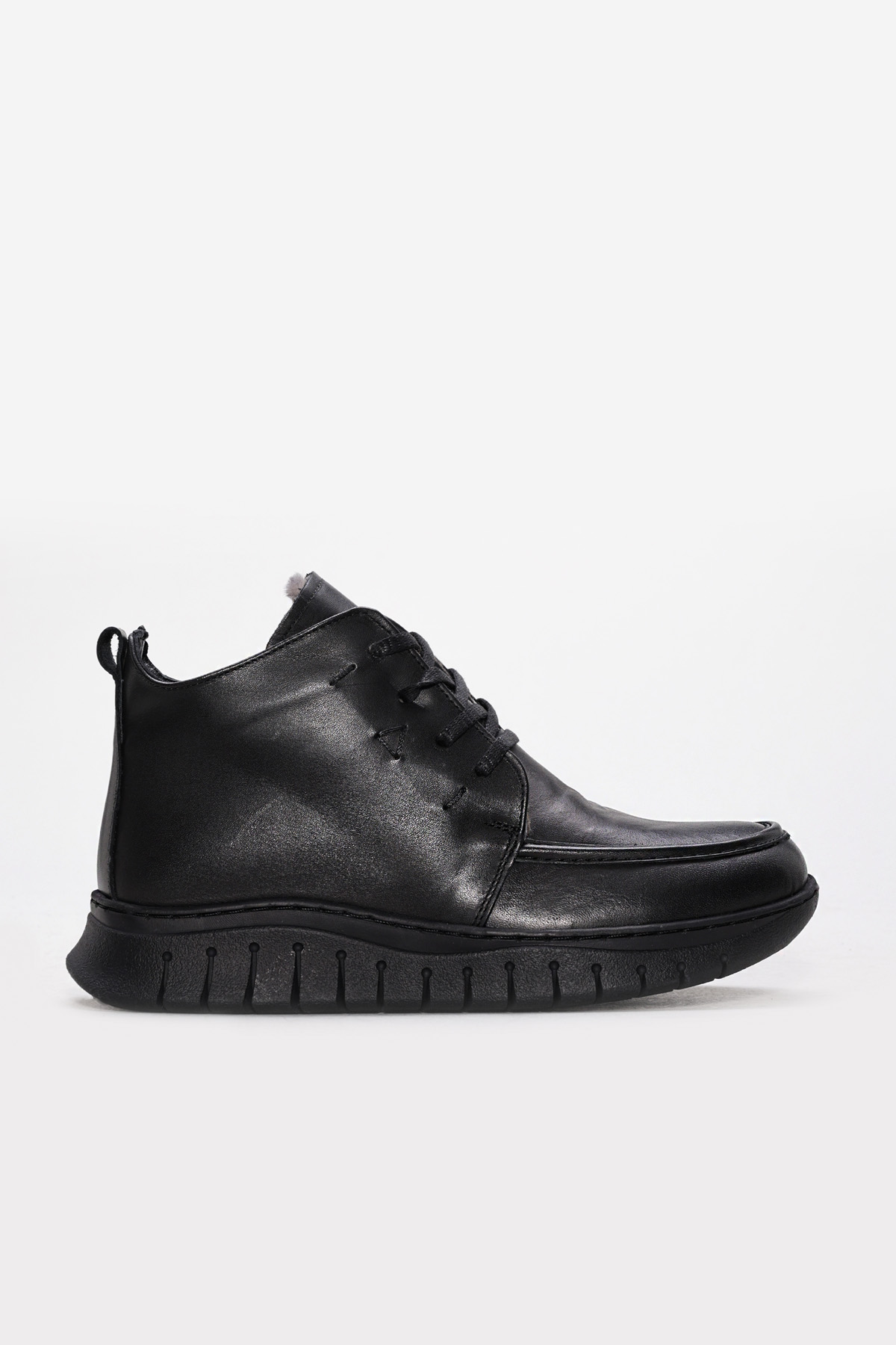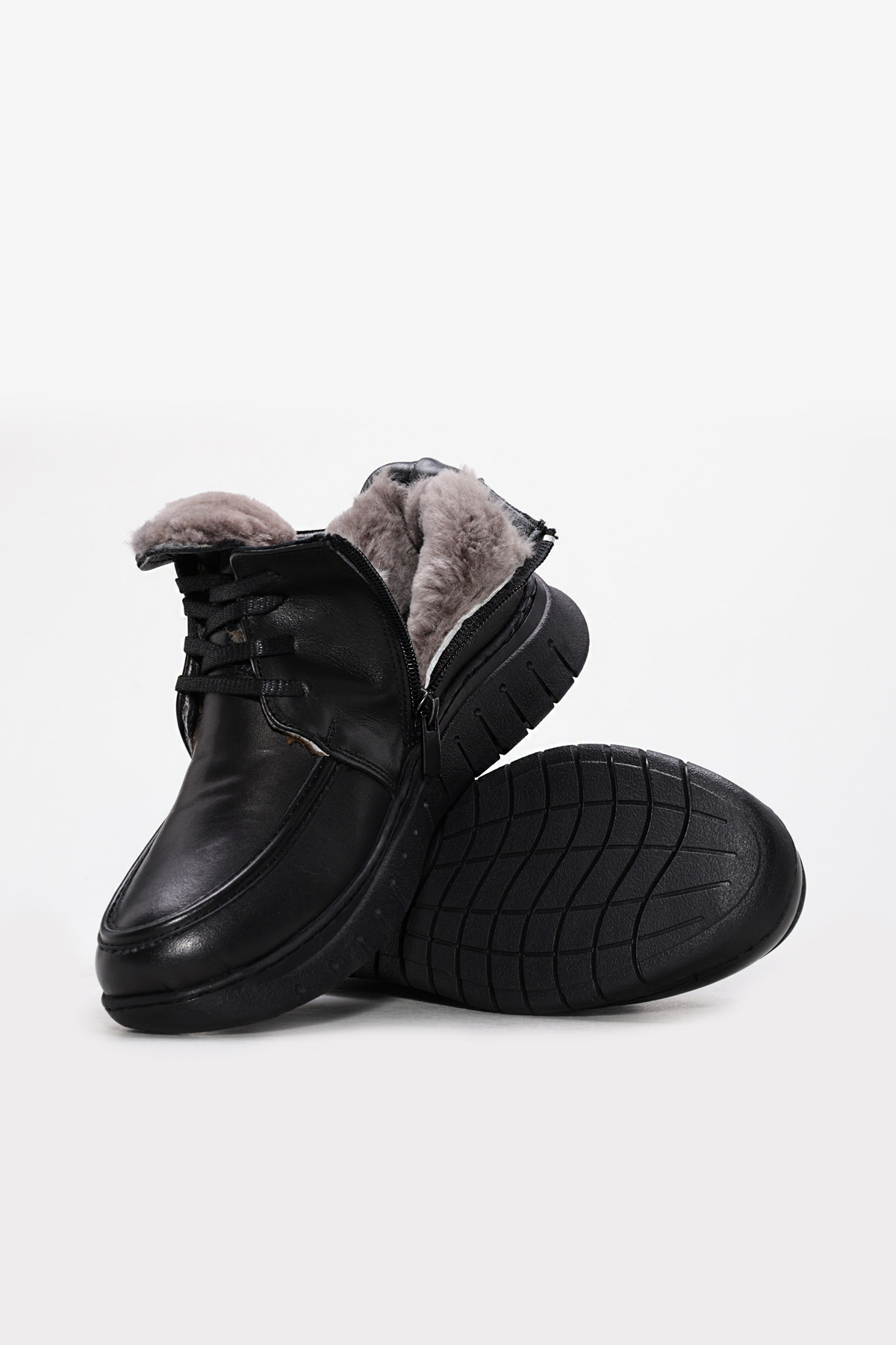 Ayakkabıhane İçi Kürklü Dışı Hakiki Deri Siyah Ortopedik Kadın Bot AH08583112612706