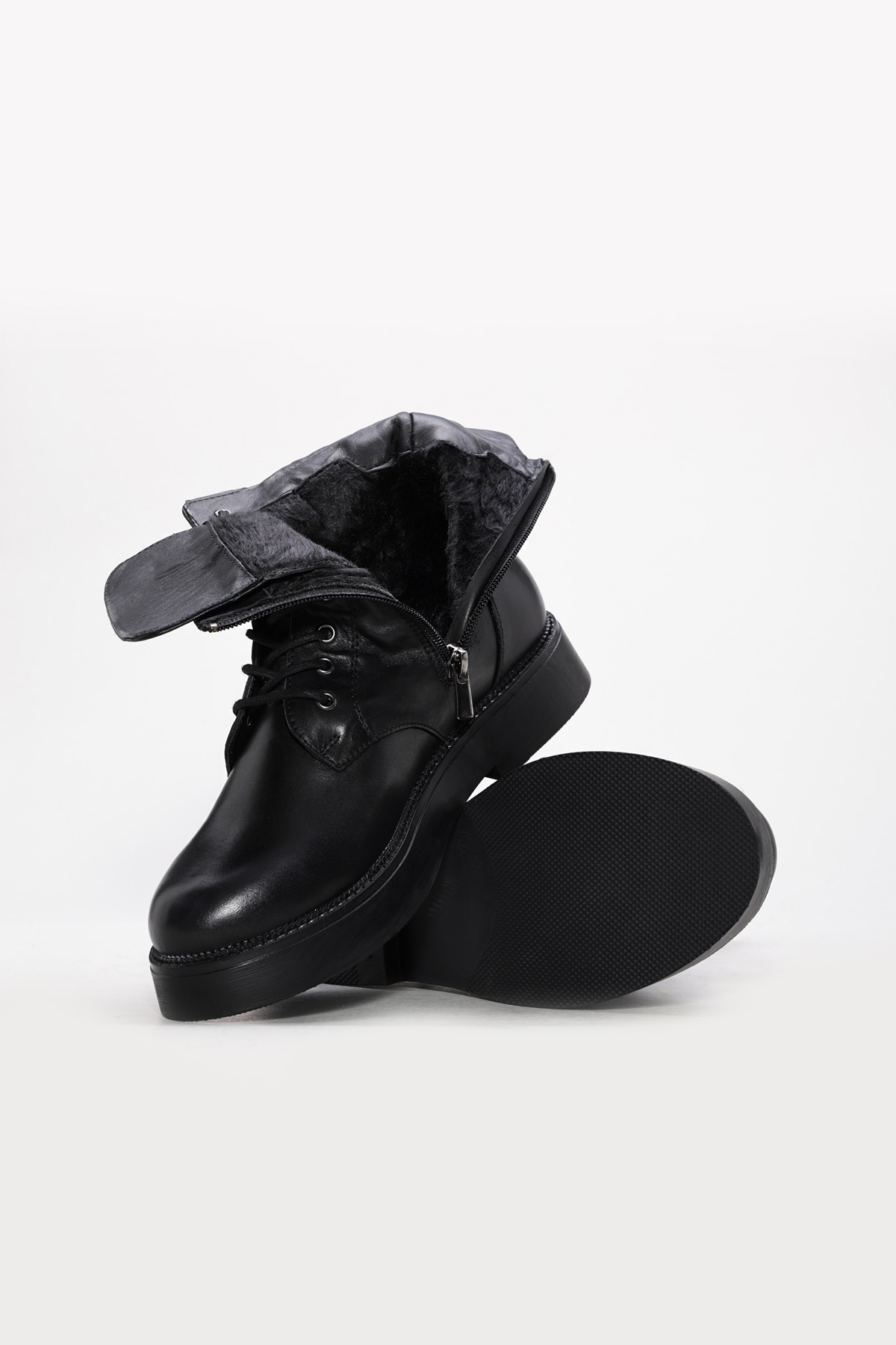 • Ayakkabıhane İçi Kürklü Dışı Hakiki Deri Siyah Tarz Kadın Klasik Bot AH08657192612611