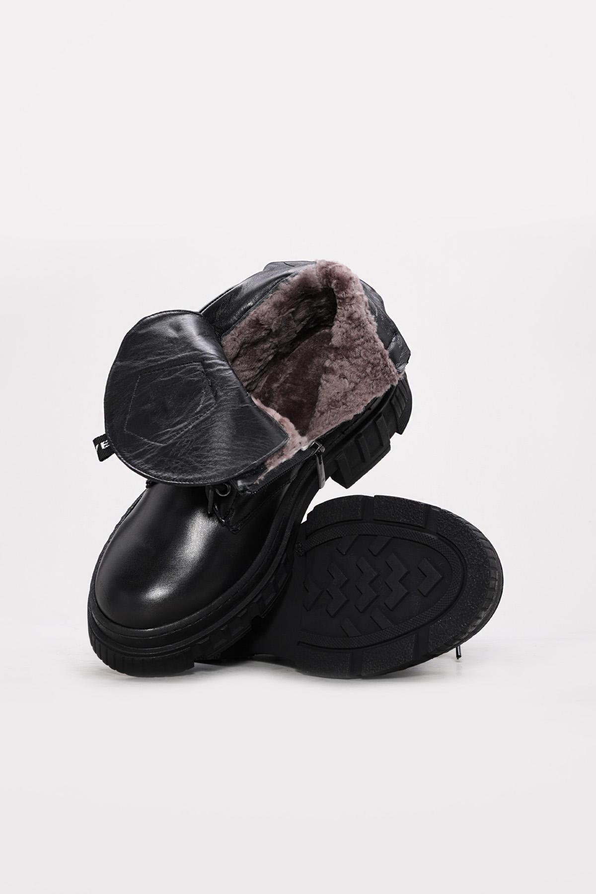 • Ayakkabıhane İçi Kürklü Dışı Hakiki Deri Siyah Tarz Kadın Spor Bot AH08262112613158