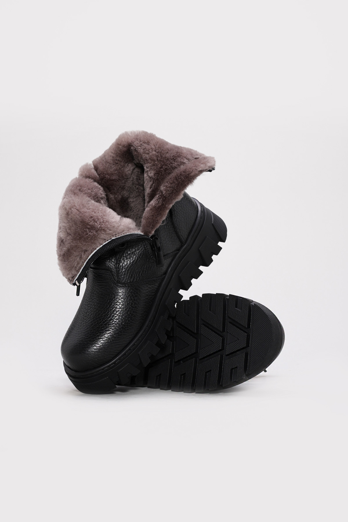 Ayakkabıhane İçi Kürklü Dışı Hakiki Deri Siyah Unisex Fermuarlı Bot AH0877011241309