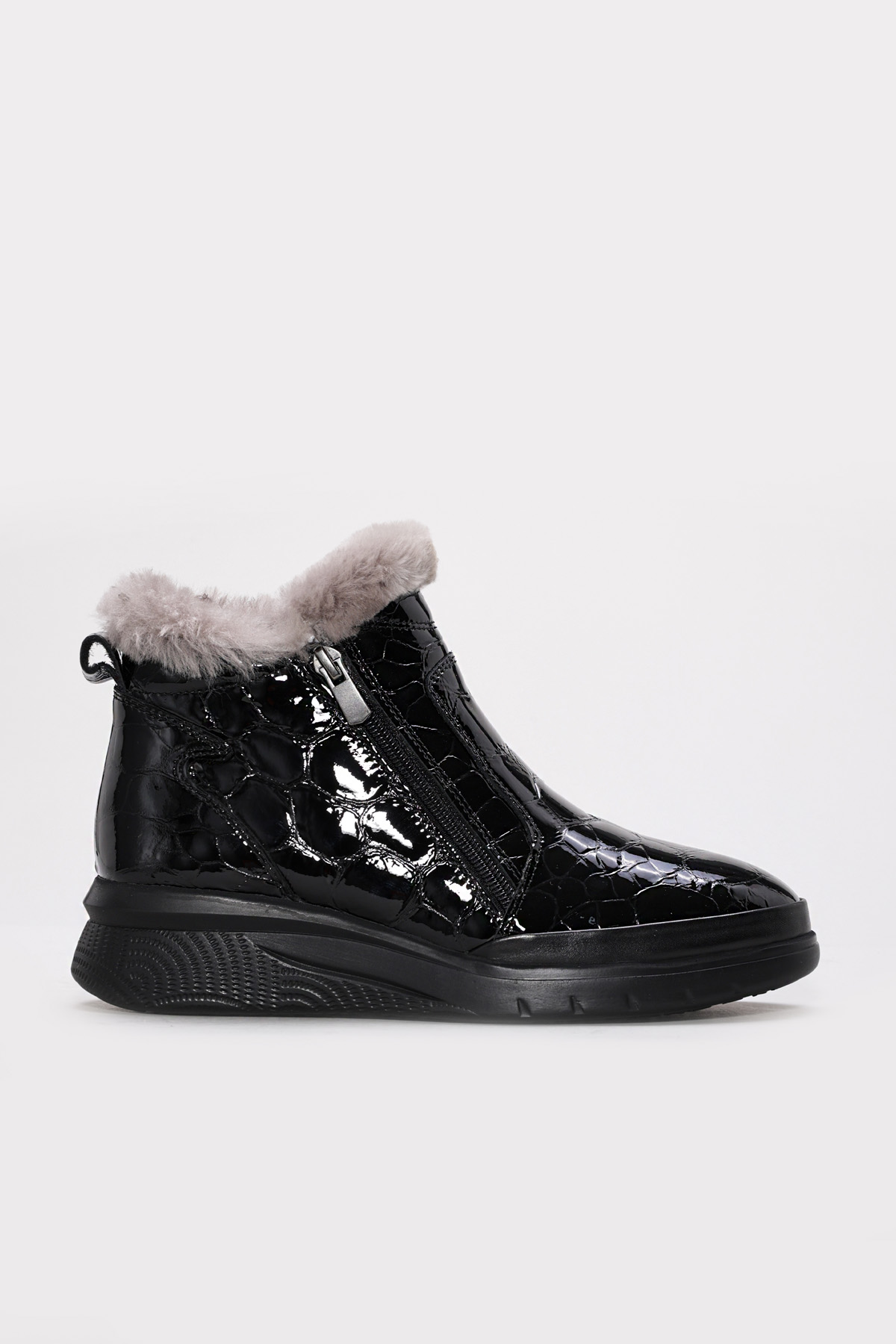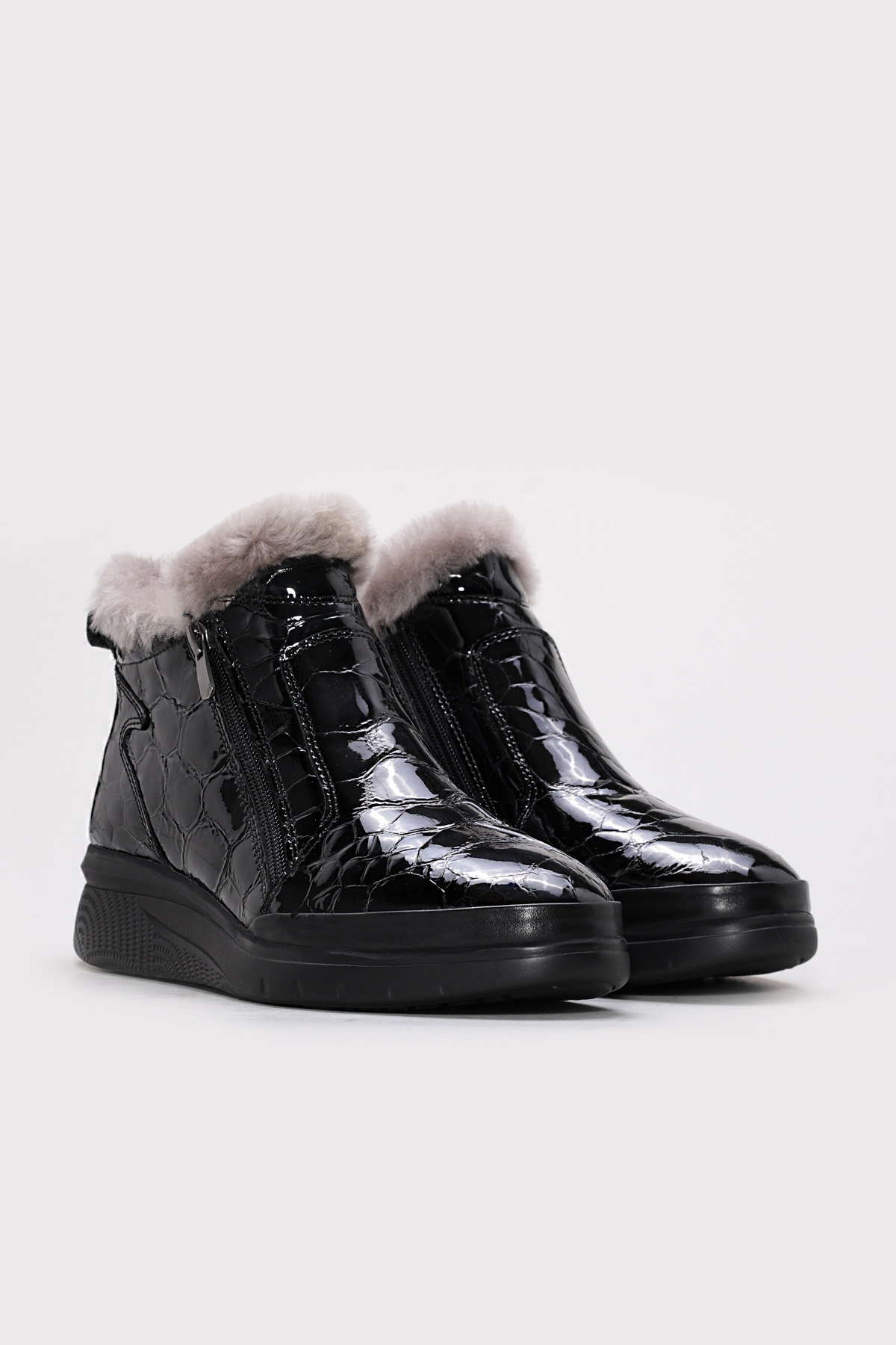 • Ayakkabıhane İçi Kürklü Dışı Hakiki Kroko Deri Siyah Kadın Klasik Bot AH08411112611100