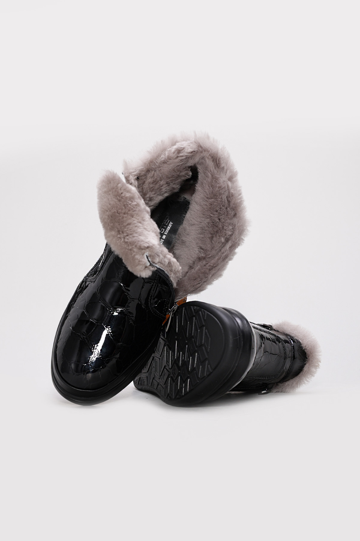 Kadın Kadın Bot Ayakkabıhane İçi Kürklü Dışı Hakiki Kroko Deri Siyah Kadın Klasik Bot AH08411112611100