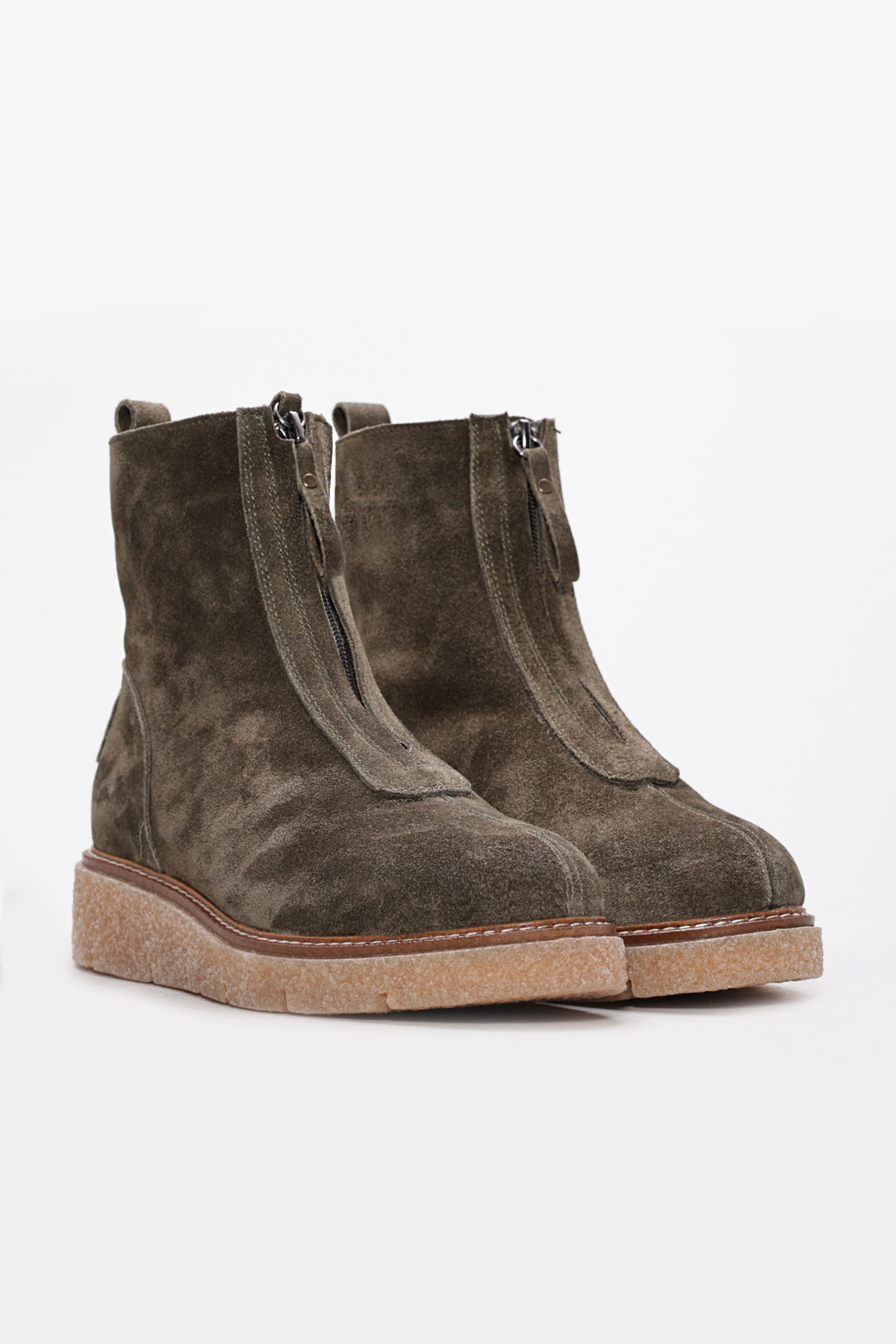 Ayakkabıhane İçi Kürklü Dışı Hakiki Süet Deri Haki Tarz Kadın Klasik Bot AH08657112612607
