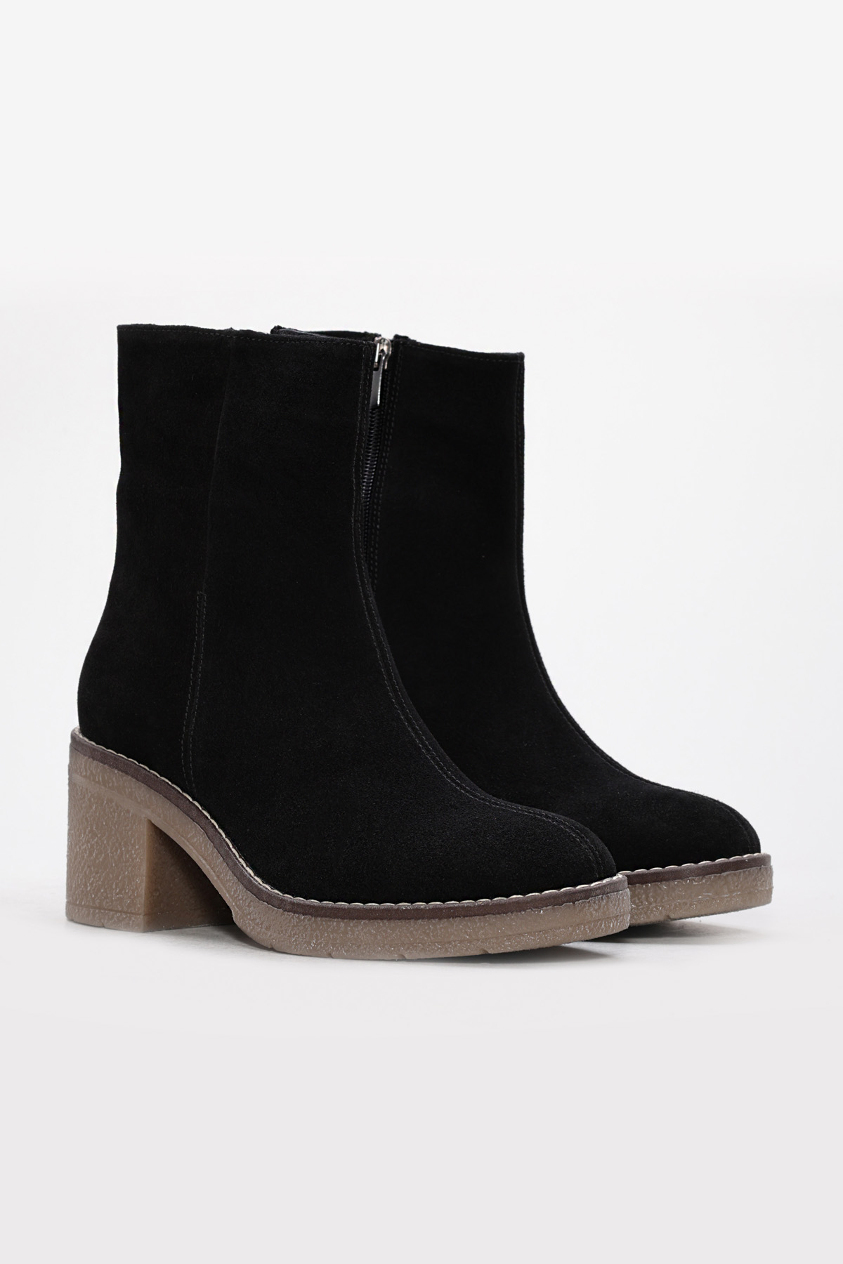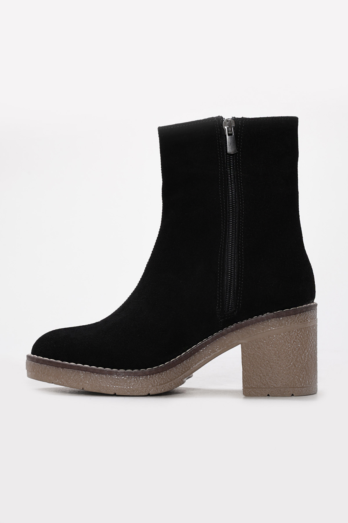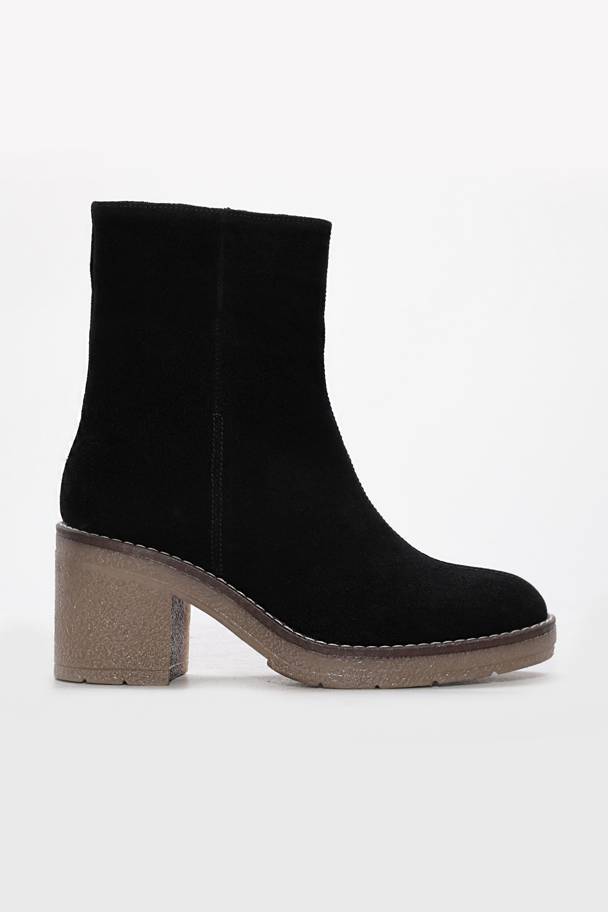 Ayakkabıhane İçi Kürklü Dışı Hakiki Süet Deri Siyah Kadın Kalın Topuklu Bot AH08657192612610