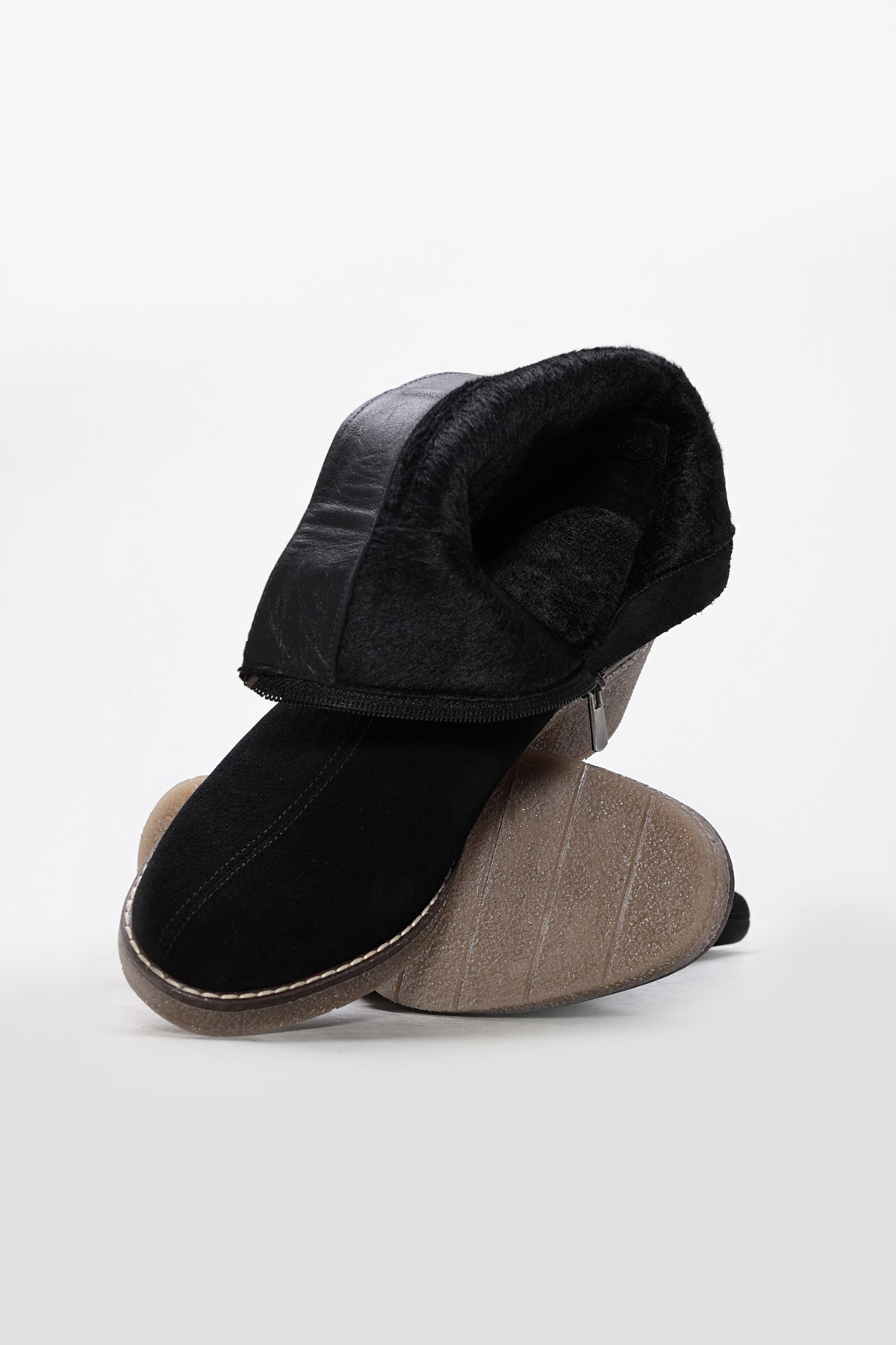 • Ayakkabıhane İçi Kürklü Dışı Hakiki Süet Deri Siyah Kadın Kalın Topuklu Bot AH08657192612610