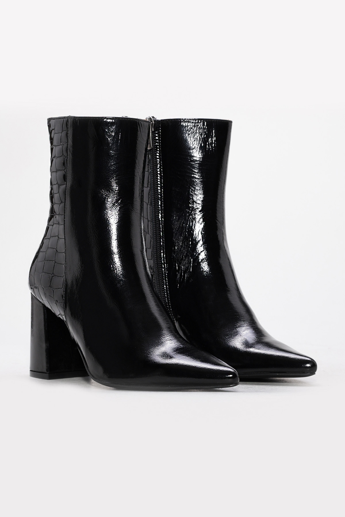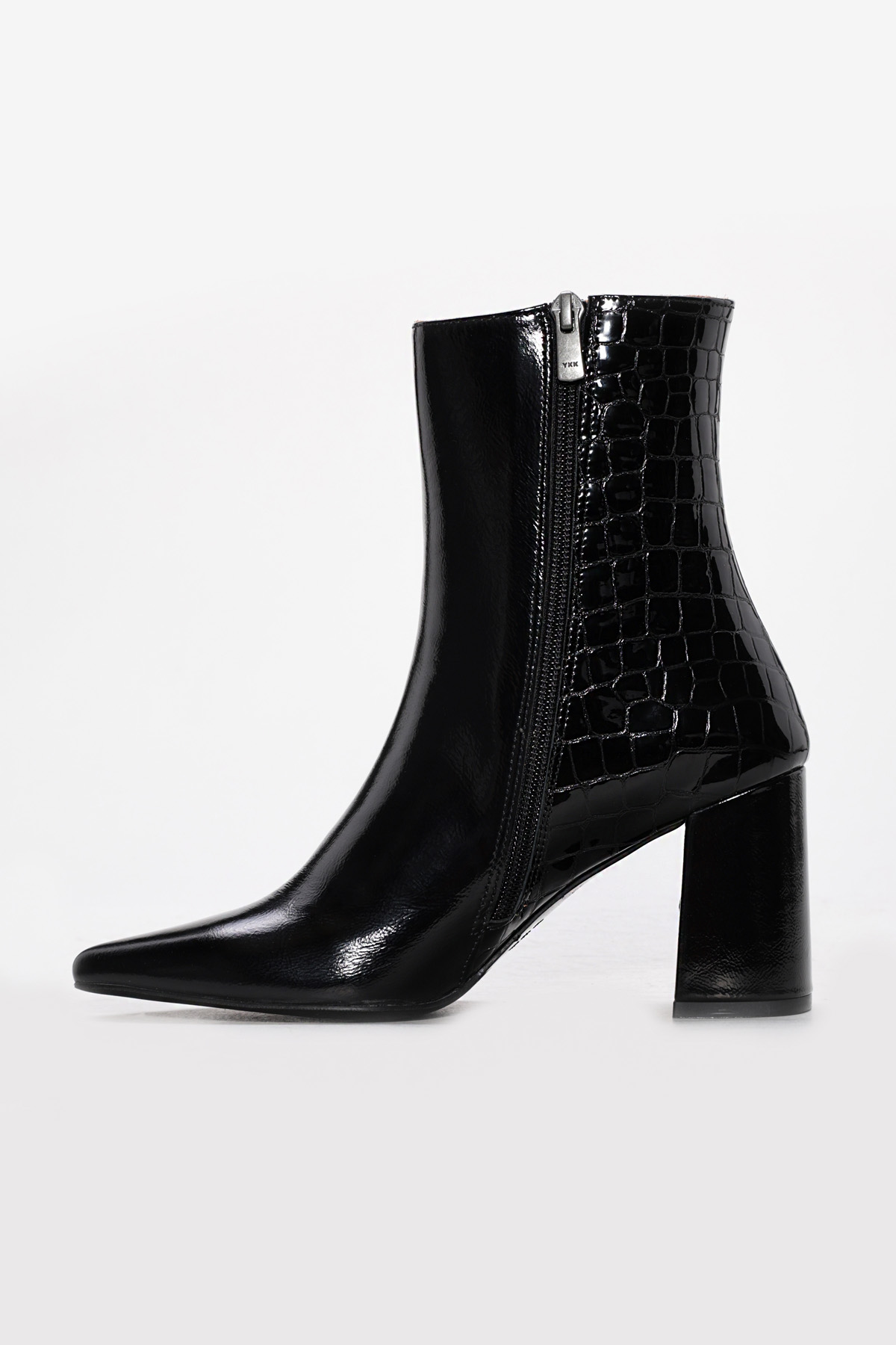 Ayakkabıhane Kaliteli Hakiki Kroko Deri Siyah Tarz Kadın Kalın Topuklu Bot AH0821542613316