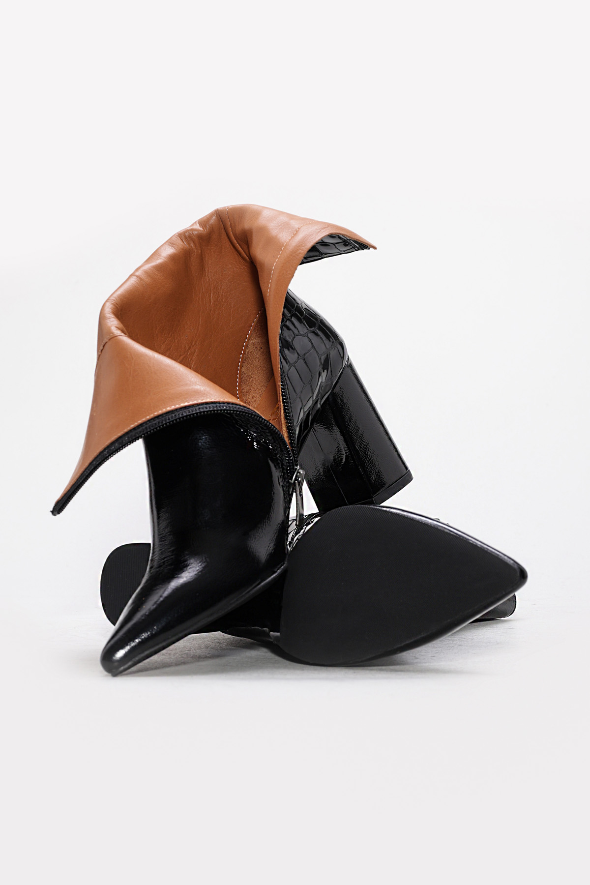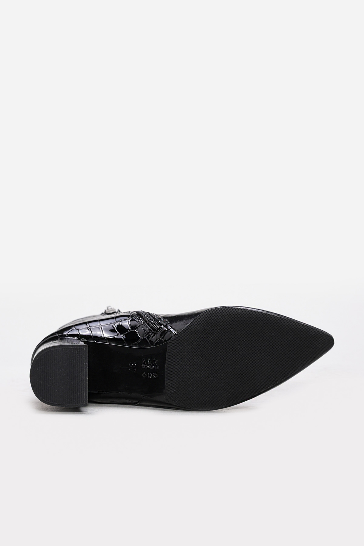 • Ayakkabıhane Kaliteli Hakiki Kroko Deri Siyah Tarz Kadın Kalın Topuklu Bot AH0821542613316