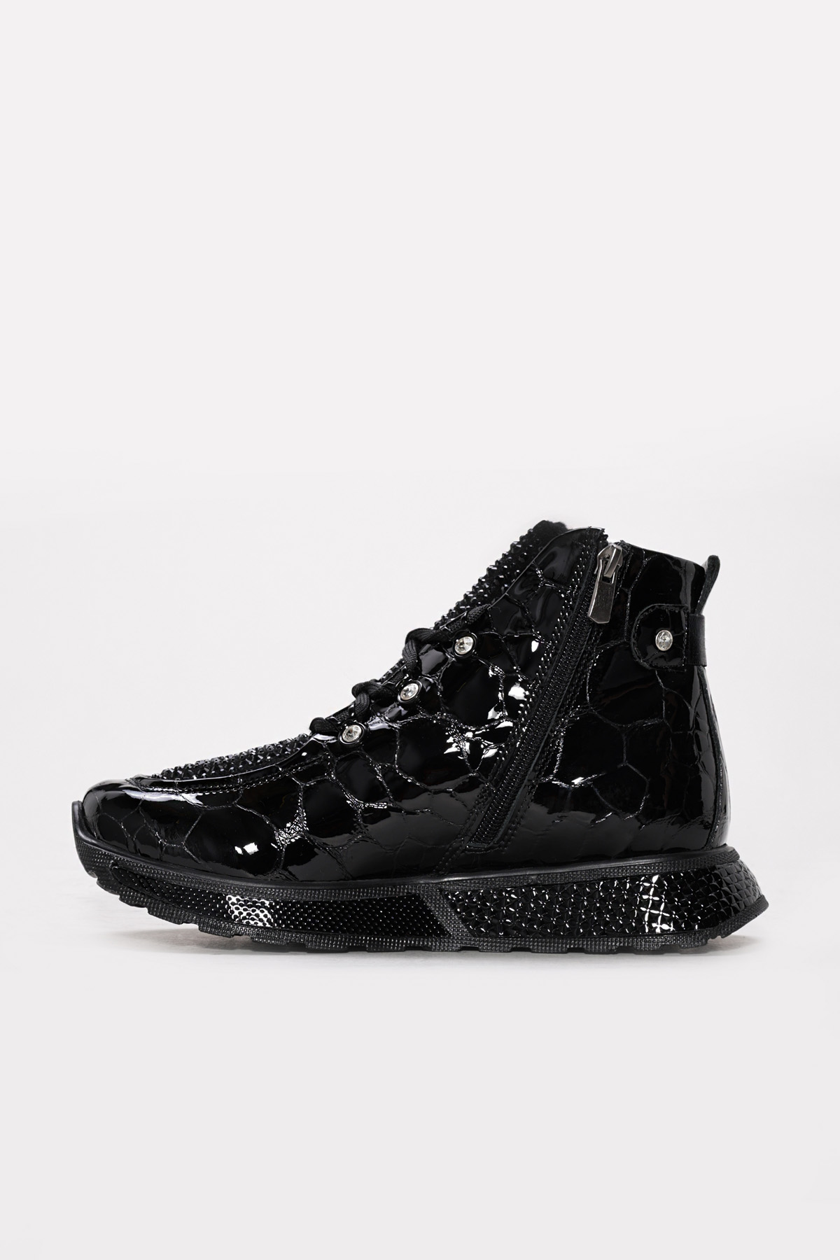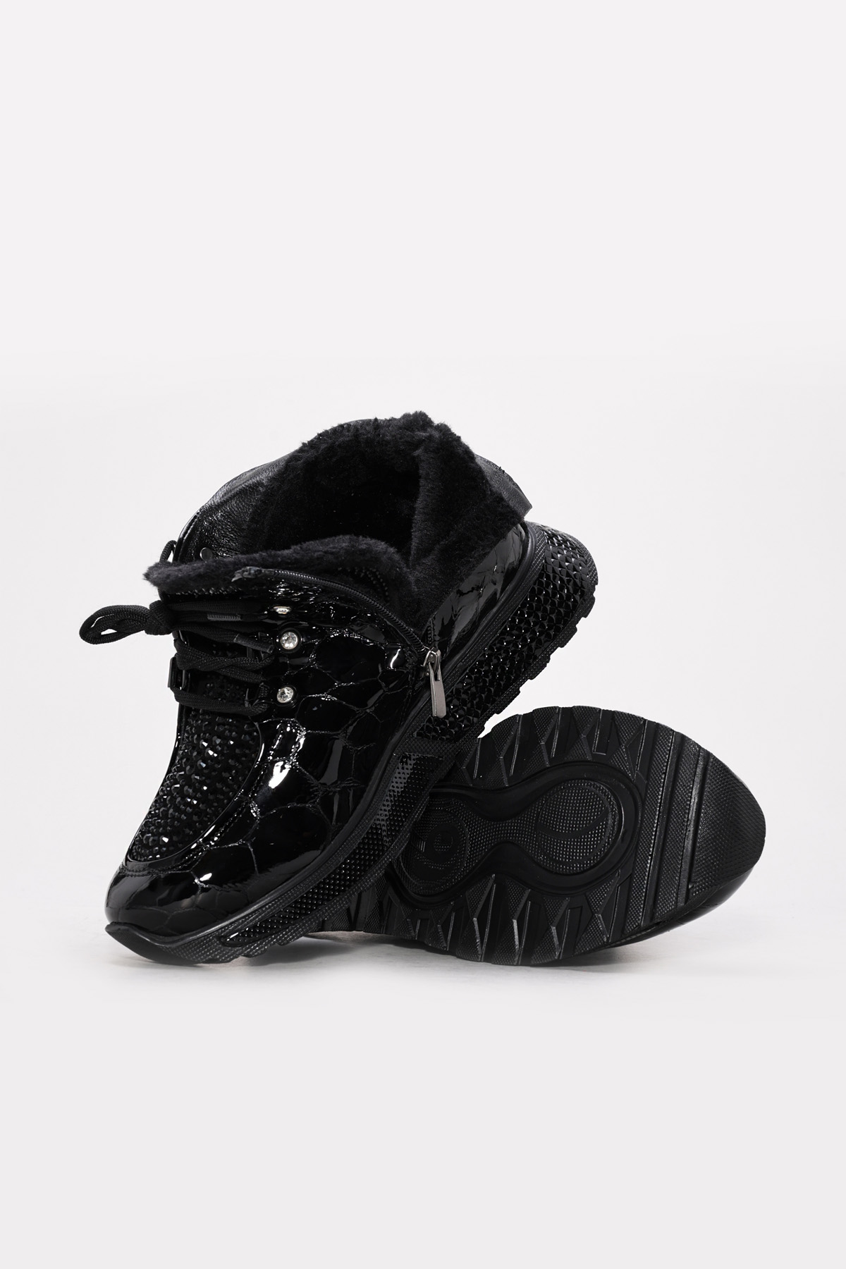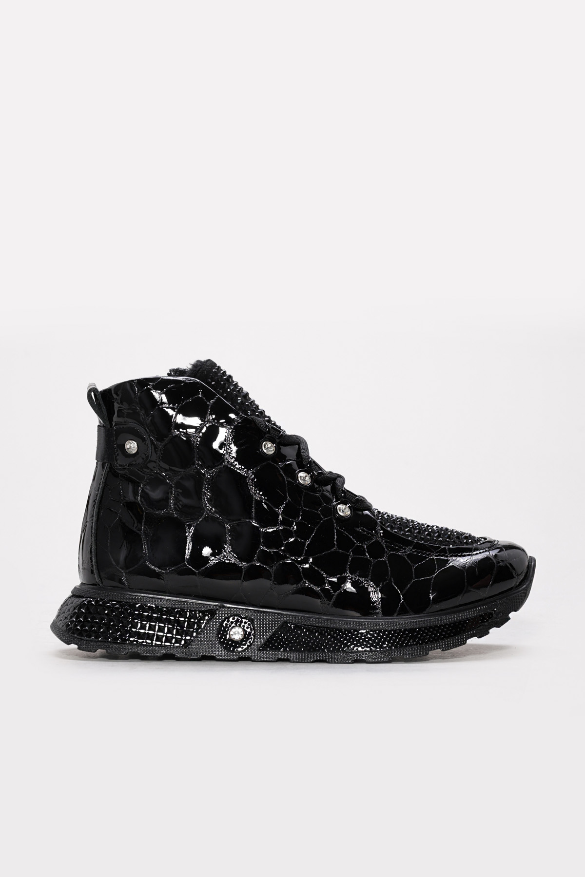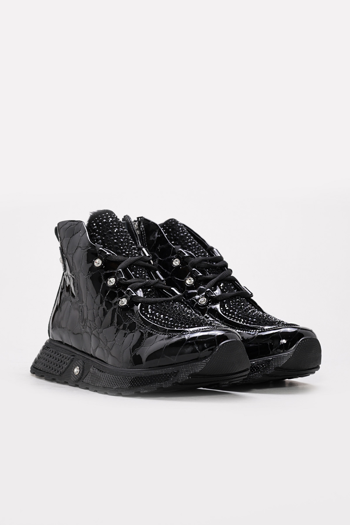 • Ayakkabıhane Kaliteli Hakiki Kroko Rugan Deri Siyah Kadın Spor Bot AH08256192612130