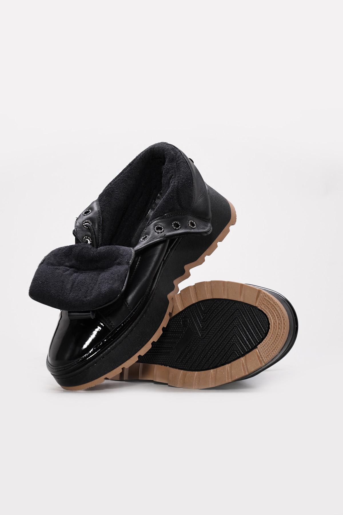 • Ayakkabıhane Kaliteli Hakiki Rugan Deri Siyah Şık Kadın Spor Bot AH08409192613338