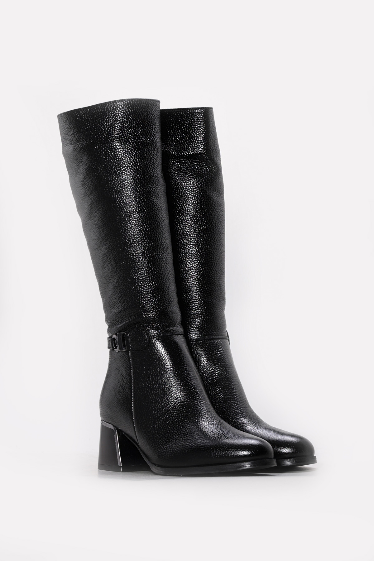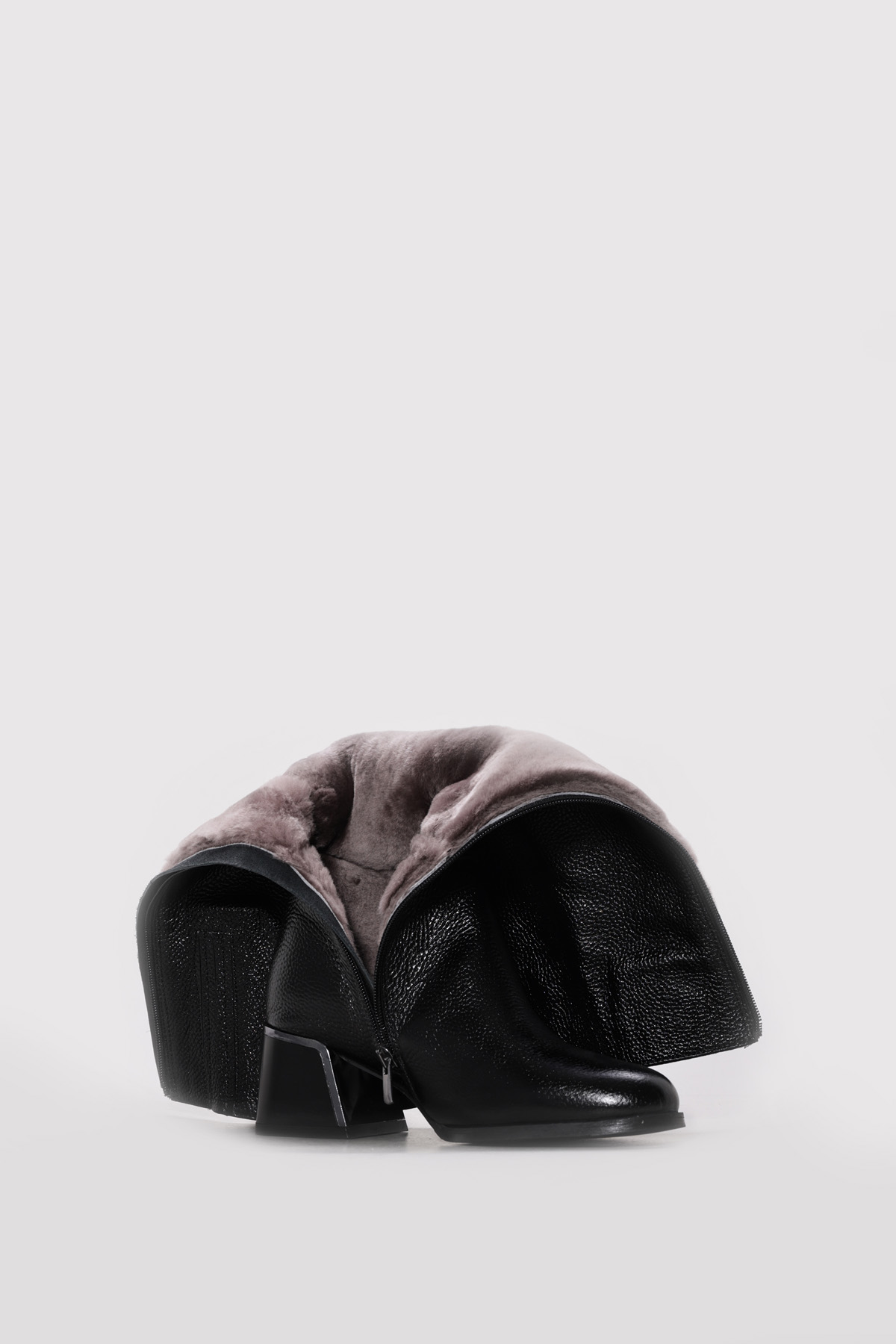 • Ayakkabıhane Hakiki Deri Kürklü Siyah Floter Kadın Dolgu Topuk Çizme AH07064KZA267