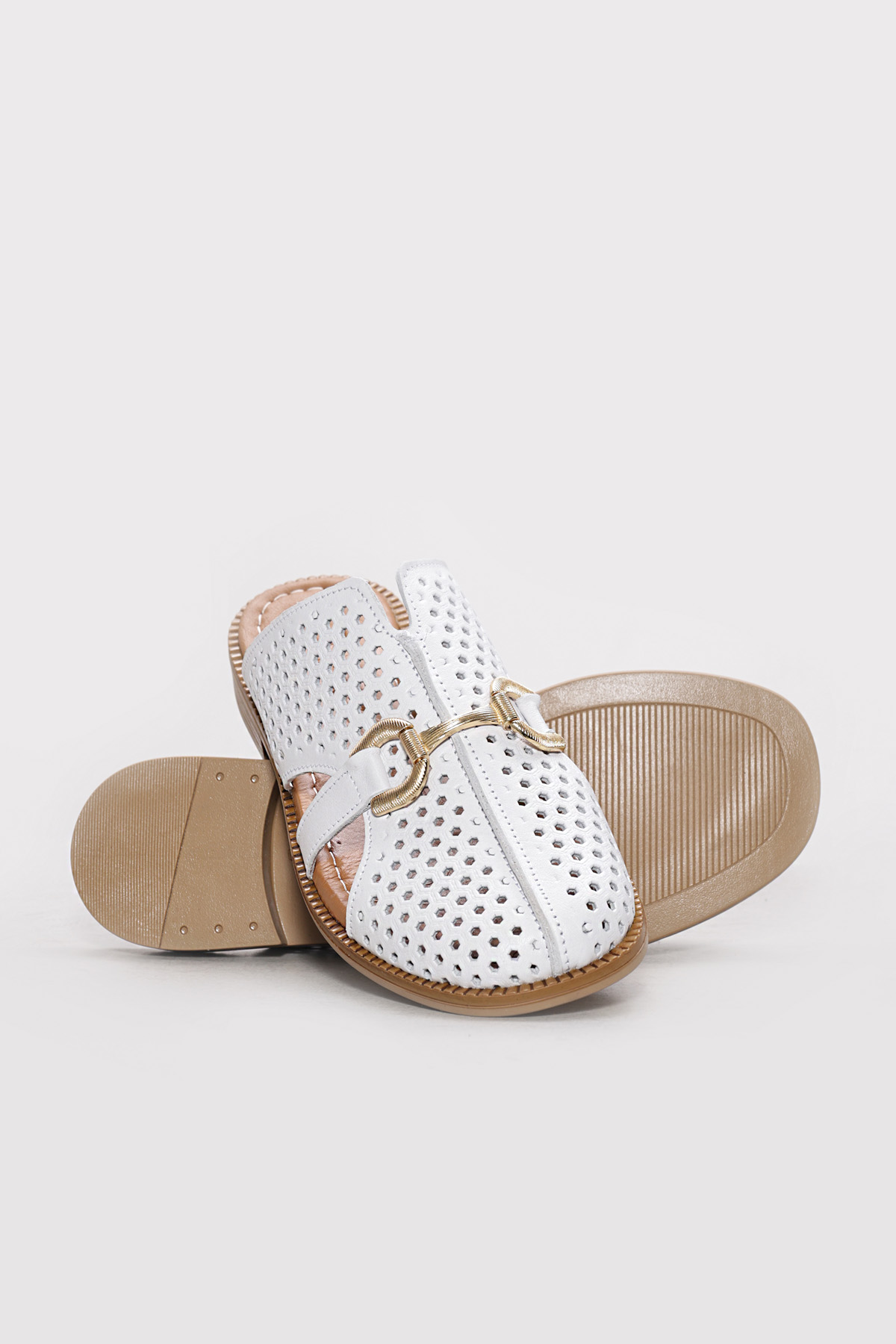 Kadın Sandalet Ayakkabıhane Hakiki Deri Beyaz Kadın Klasik Terlik AH07283ZA823