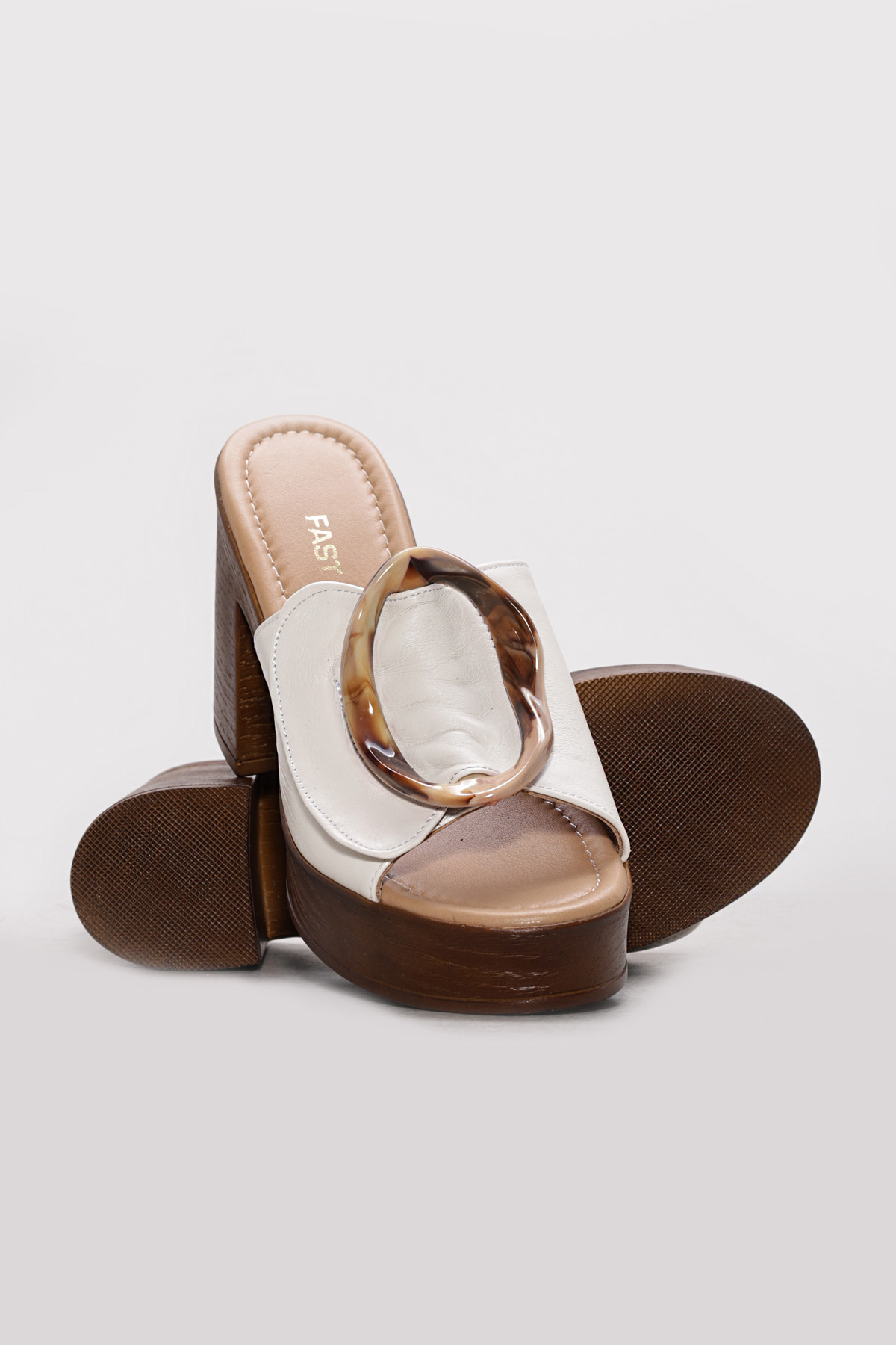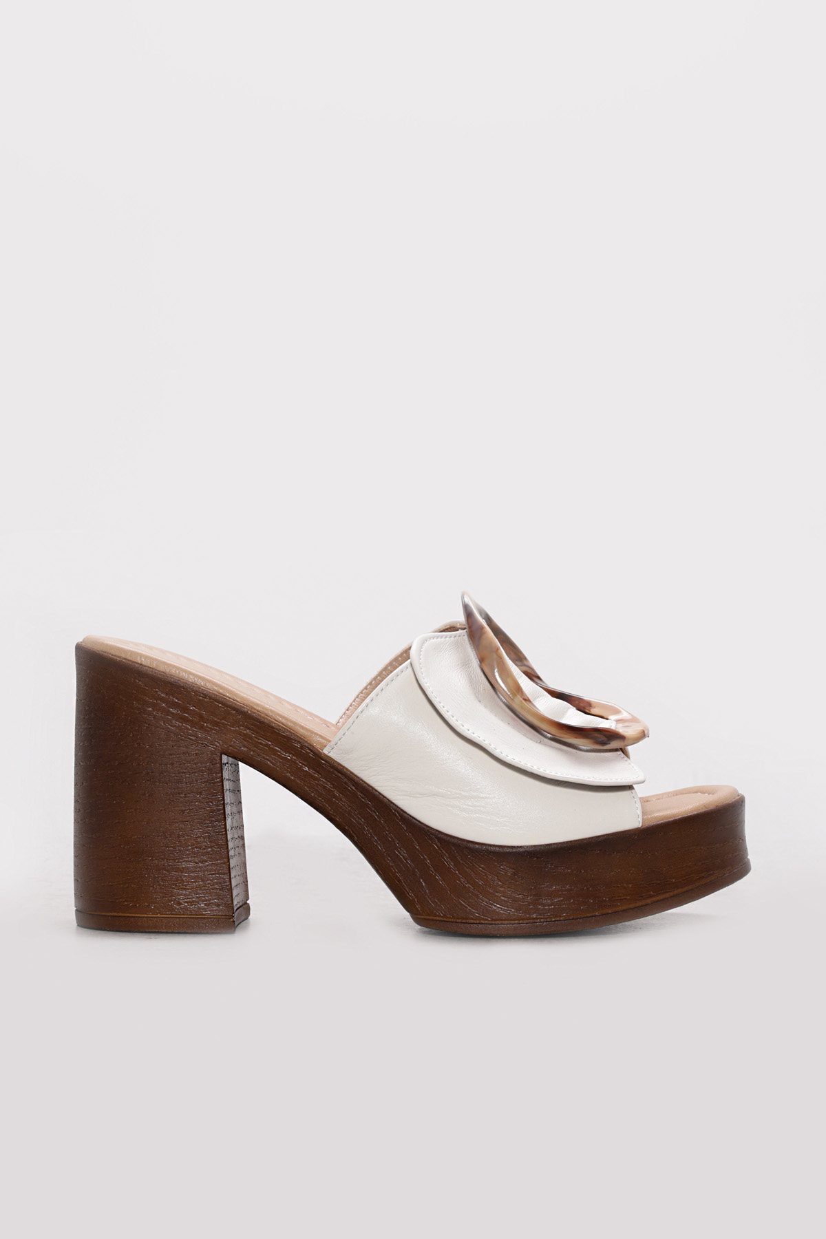 Ayakkabıhane Hakiki Deri Bej Kadın Dolgu Topuk Terlik AH07275ZA2039