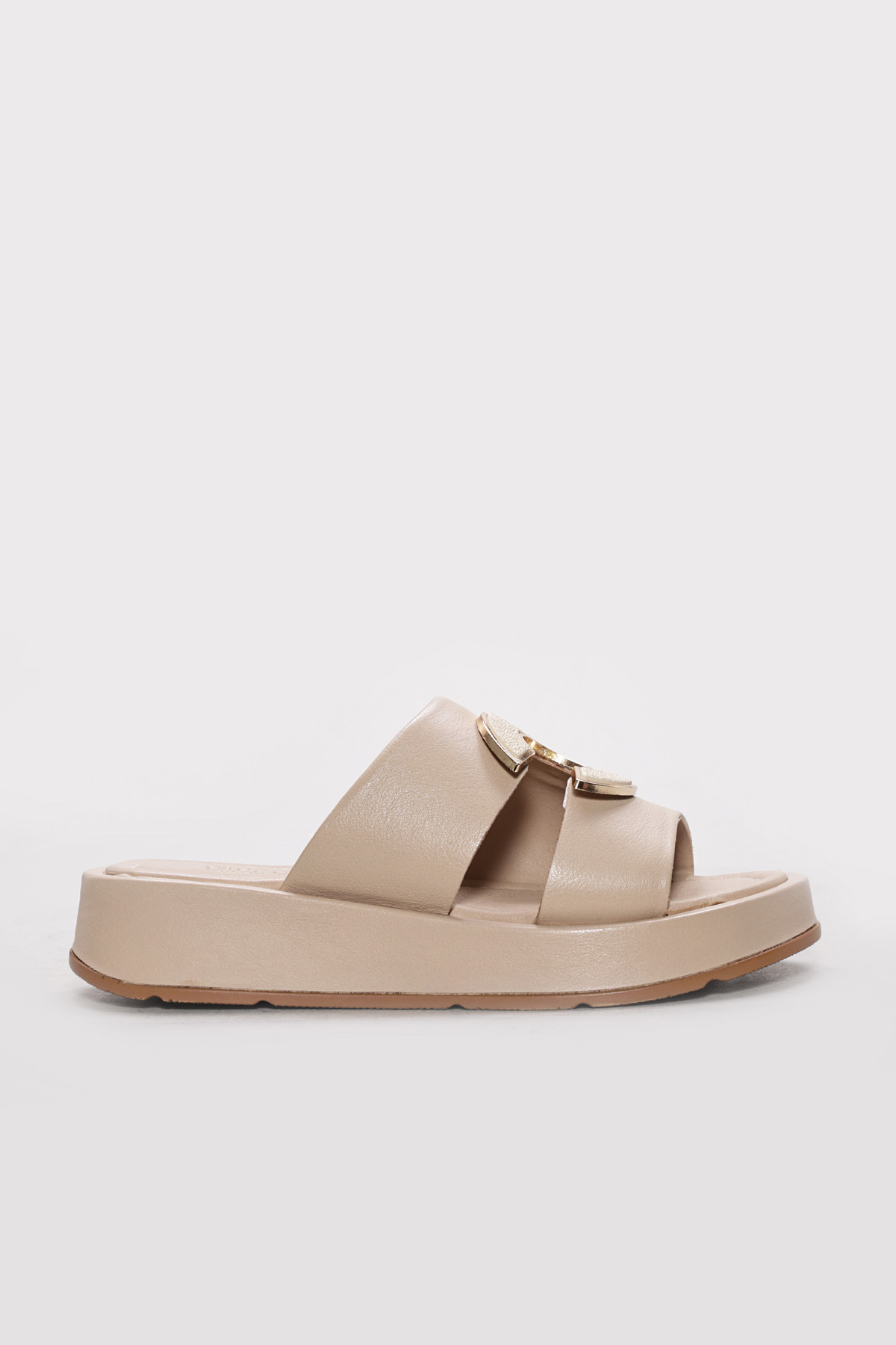 Ayakkabıhane Hakiki Deri Bej Kadın Düz Sandalet AH07621ZA1554