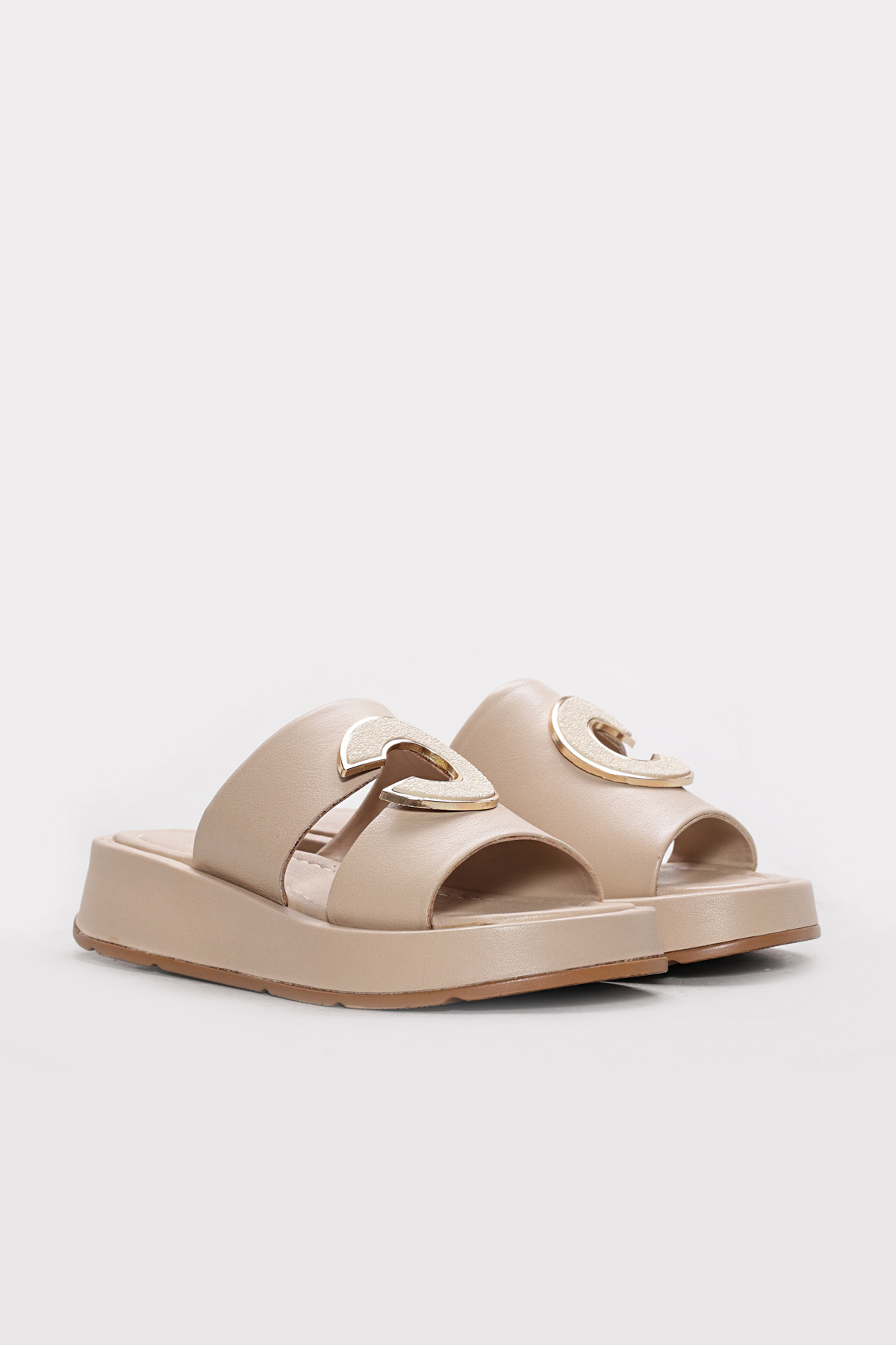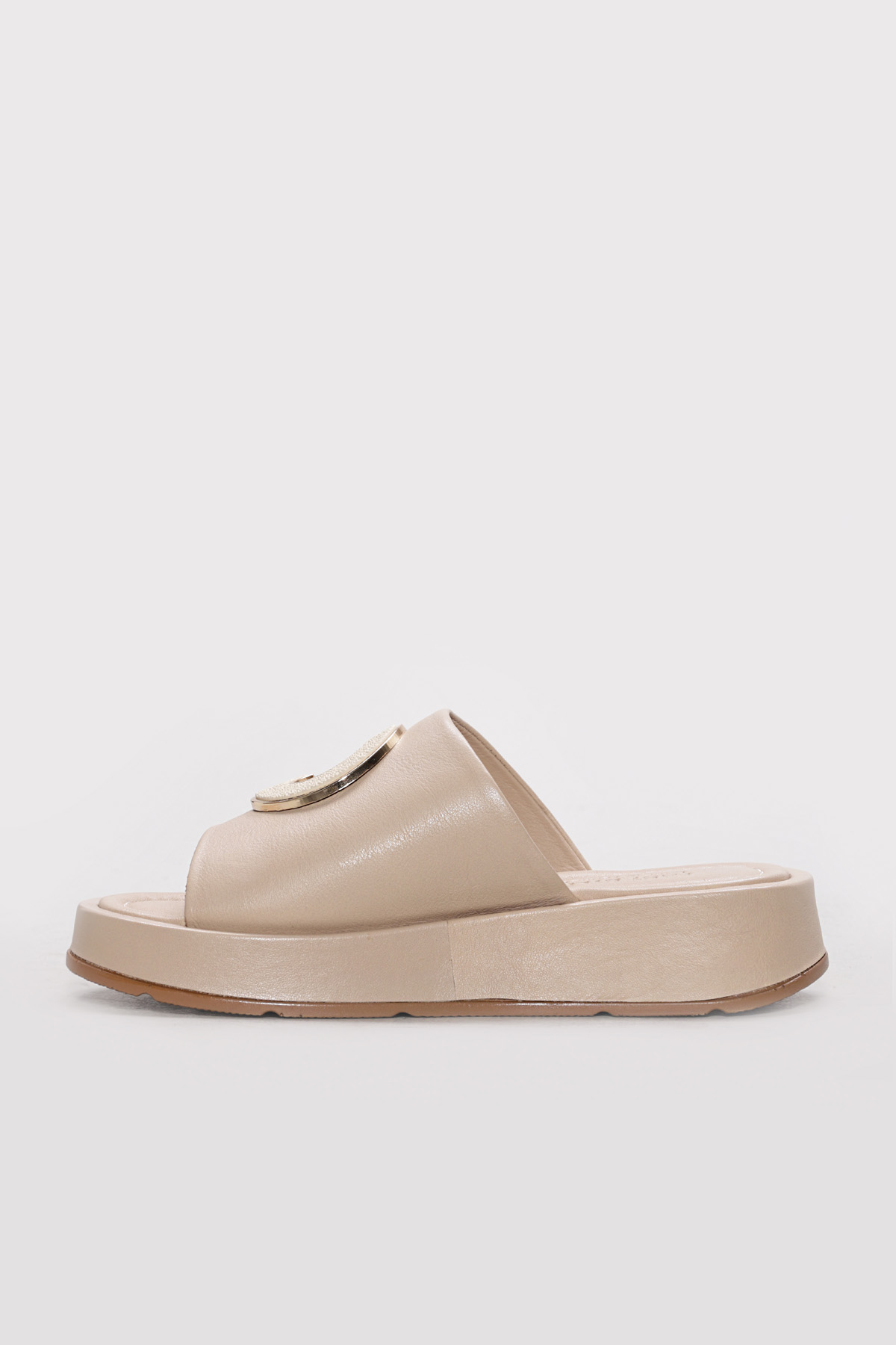 Kadın Terlik Ayakkabıhane Hakiki Deri Bej Kadın Düz Sandalet AH07621ZA1554