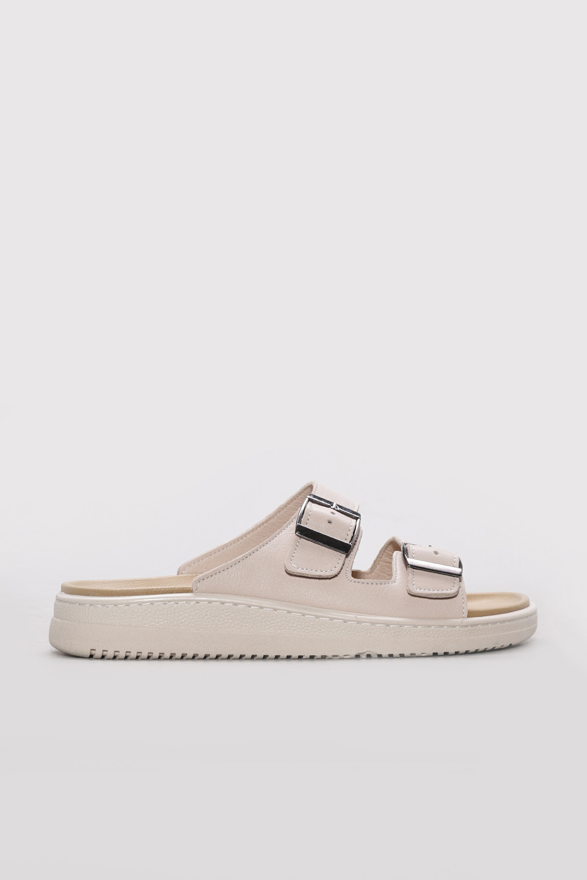 Ayakkabıhane Hakiki Deri Bej Kadın Kısa Topuklu Terlik AH07160ZACF0260