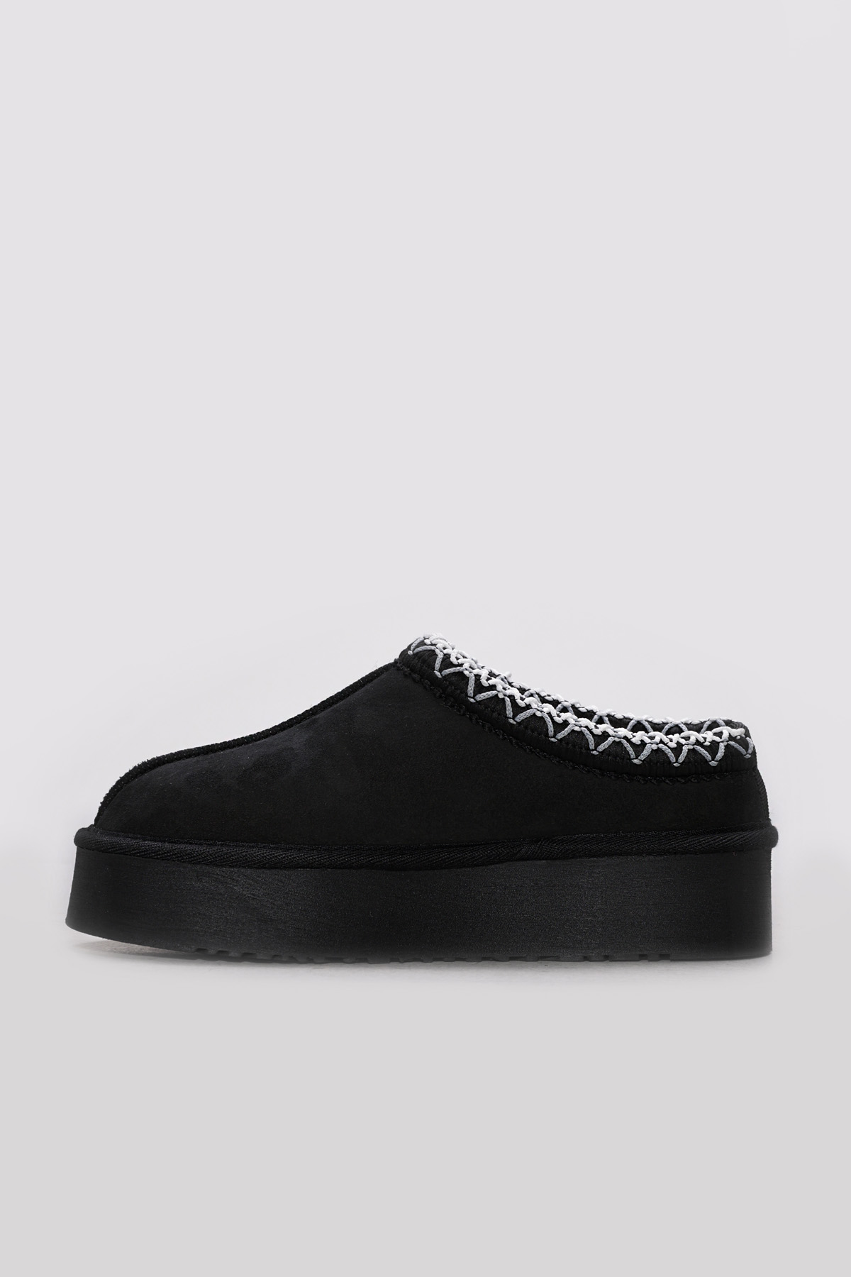 Kadın Terlik Ayakkabıhane Hakiki Deri Kürklü Siyah Kadın Sabo Terlik AH07046KZA605