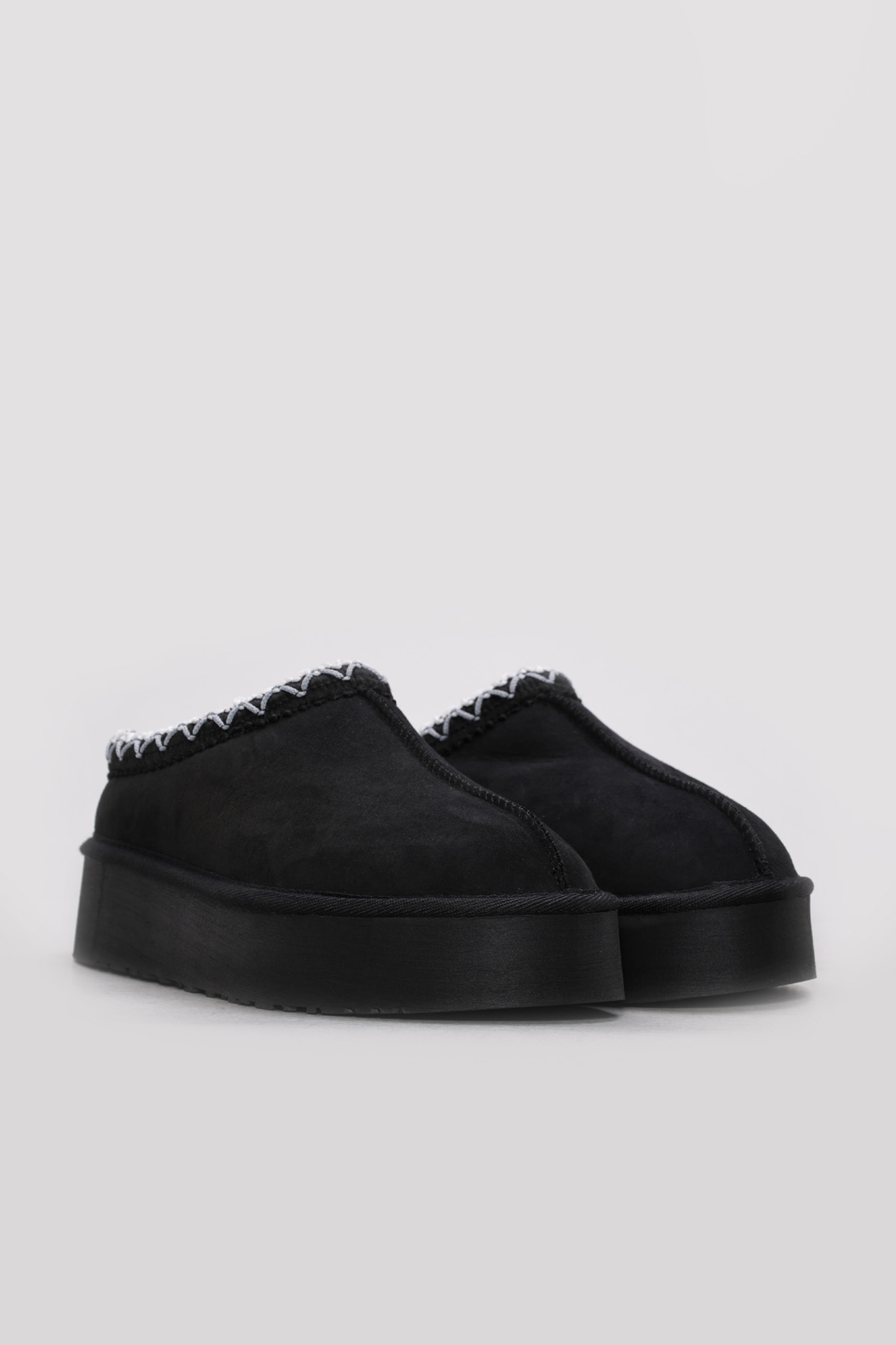 • Ayakkabıhane Hakiki Deri Kürklü Siyah Kadın Sabo Terlik AH07046KZA605