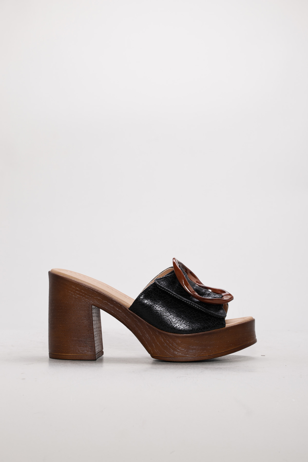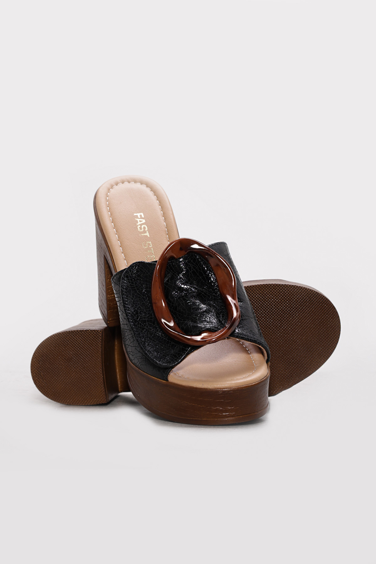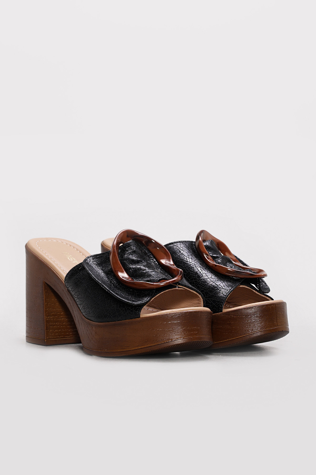 • Ayakkabıhane Hakiki Deri Sıyah Cam Kırıgı Kadın Dolgu Topuk Terlik AH07275ZA2039