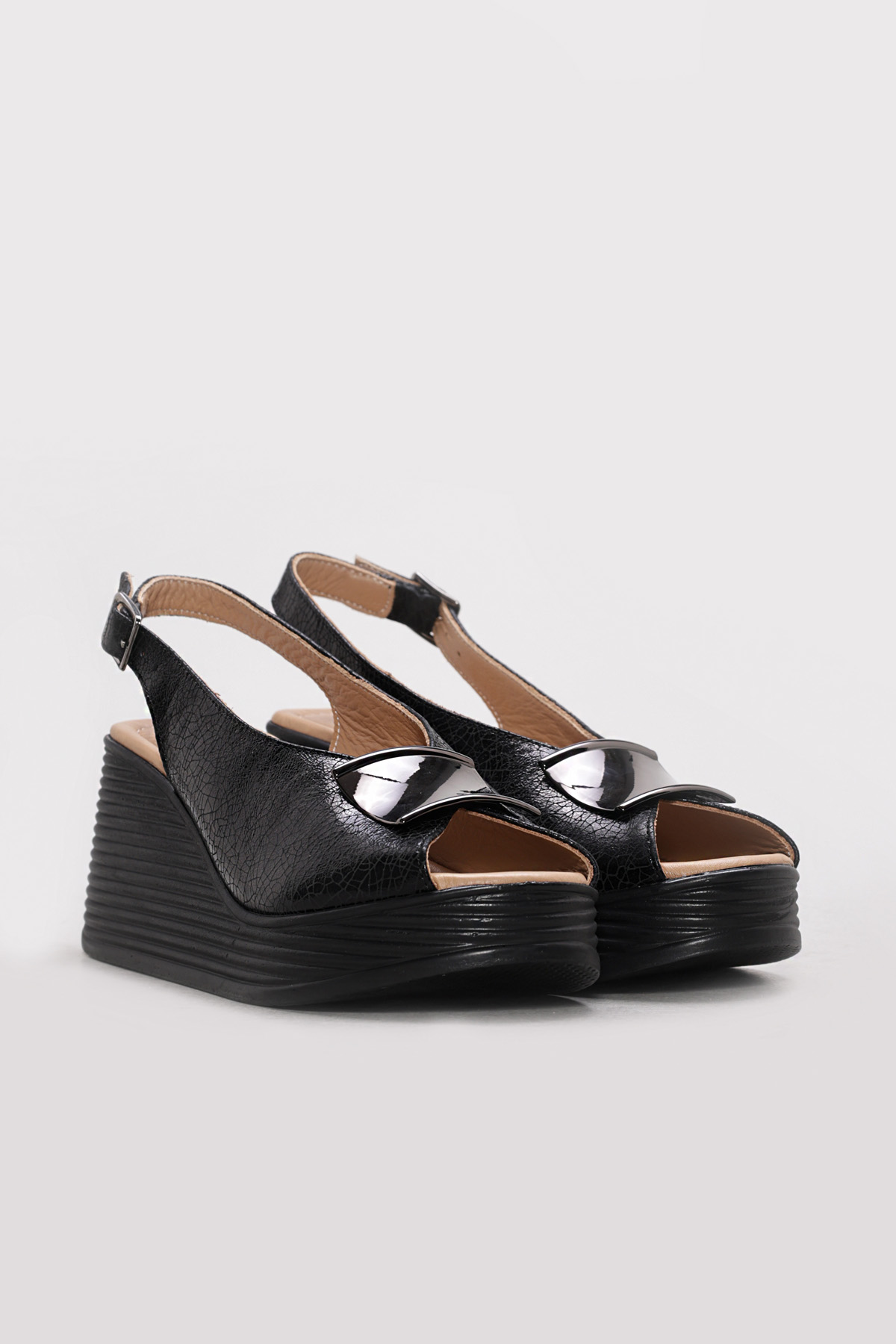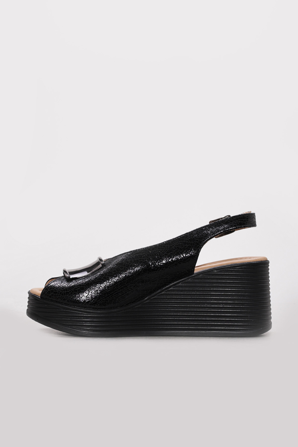 • Ayakkabıhane Hakiki Deri Sıyah Cam Kırıgı Kadın Dolgu Topuk Terlik AH07275ZA4012