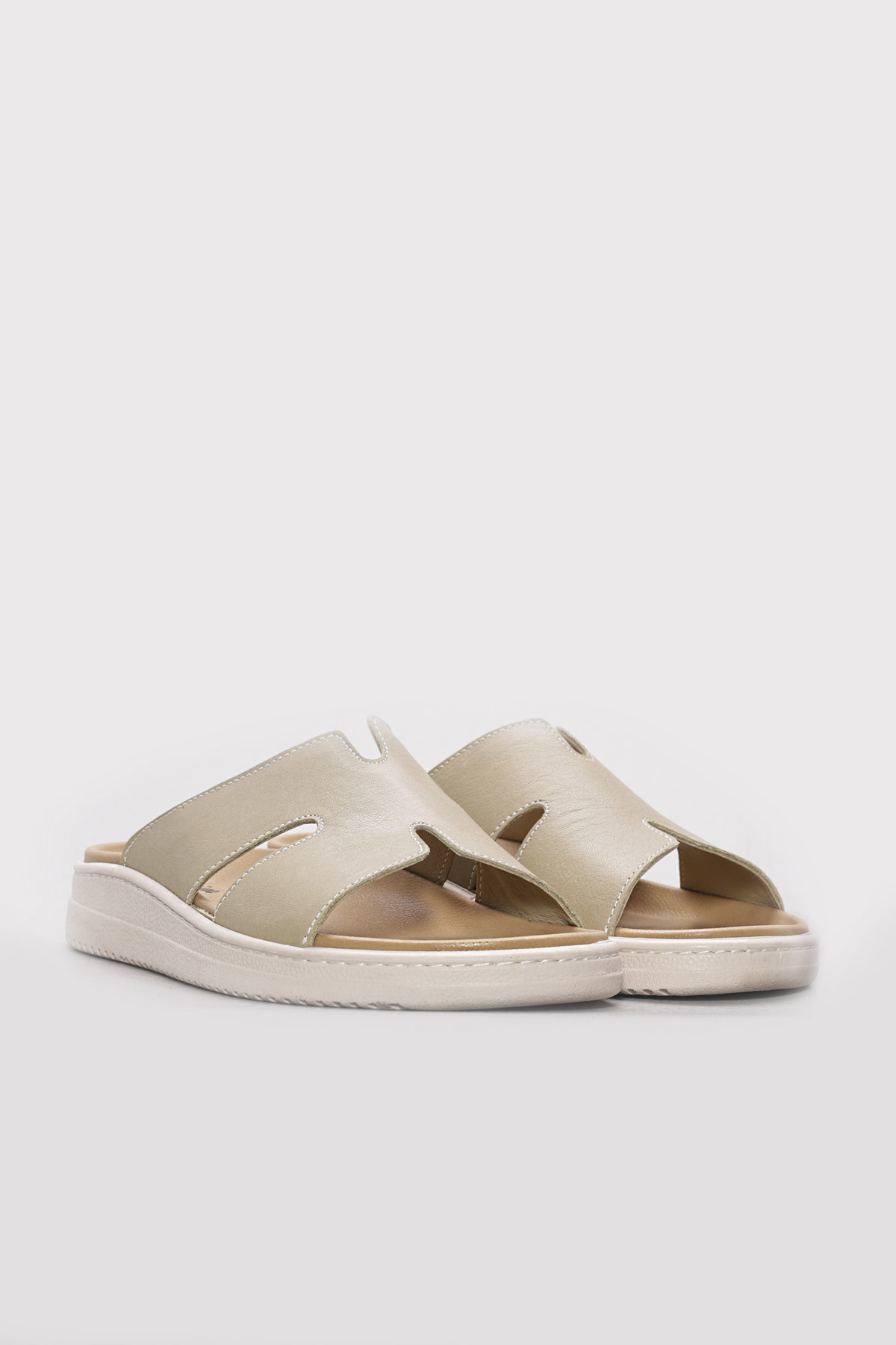 • Ayakkabıhane Hakiki Deri Yeşil Kadın Kısa Topuklu Terlik AH07160ZAHR0250