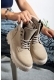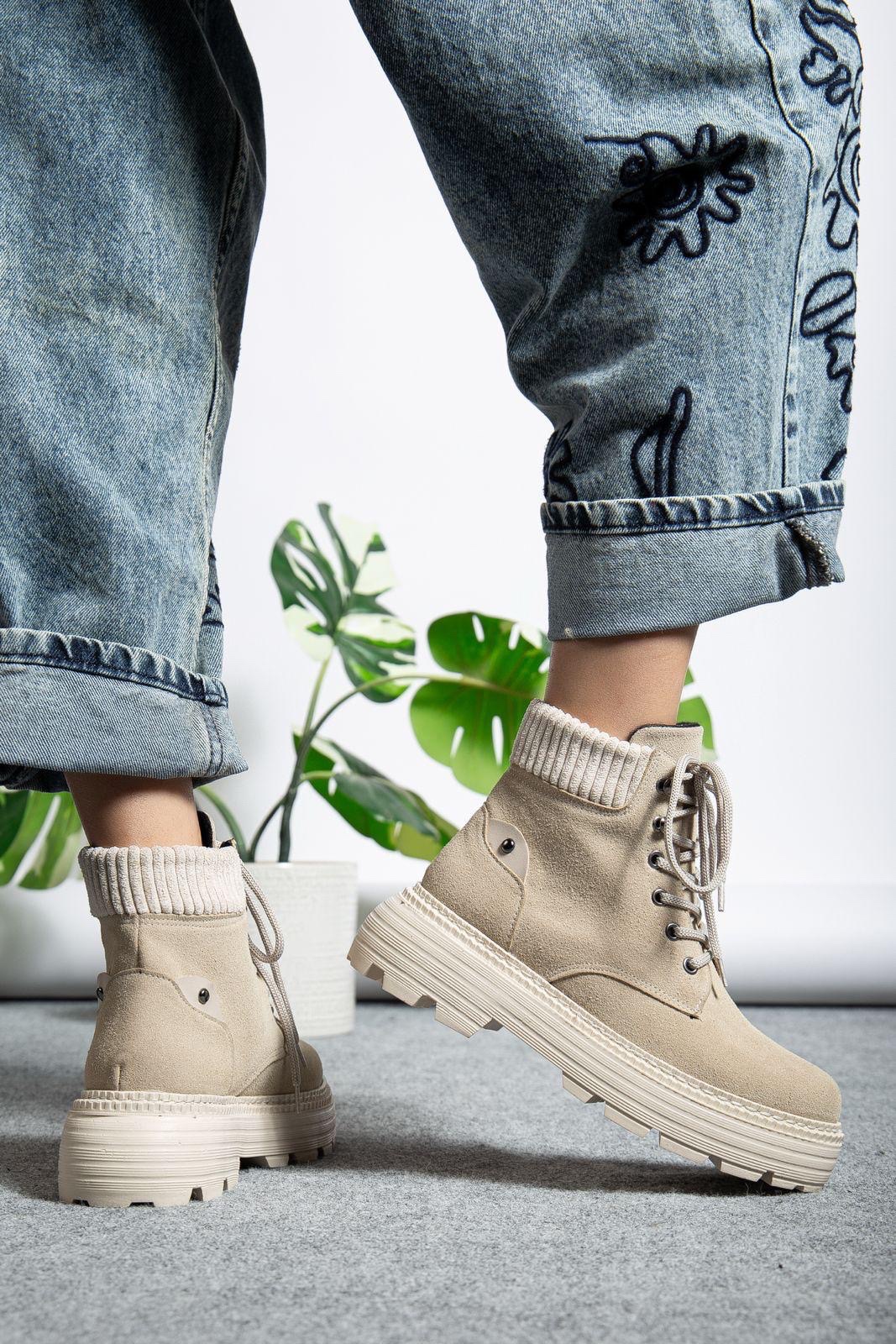 • Krem Süet Bağcıklı Yüksek Taban Kadın Bot